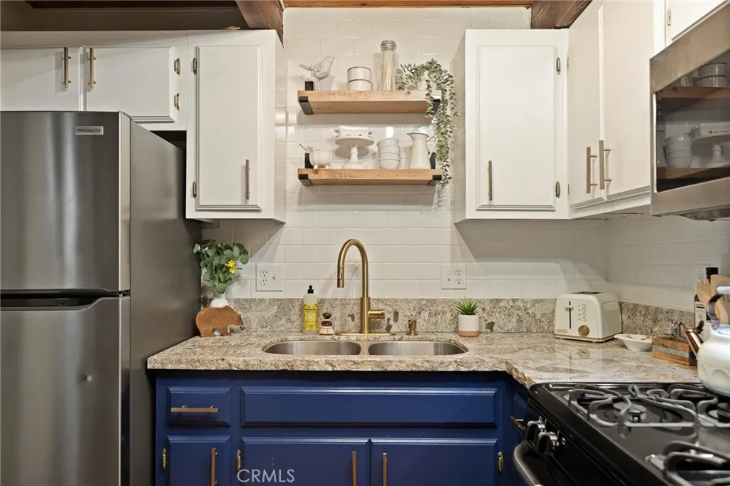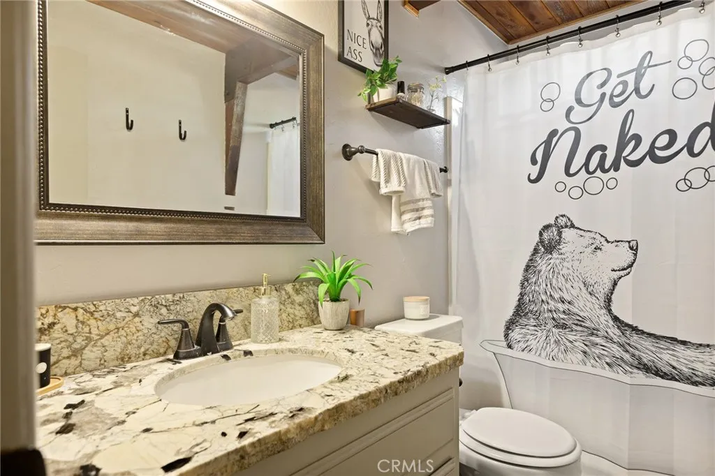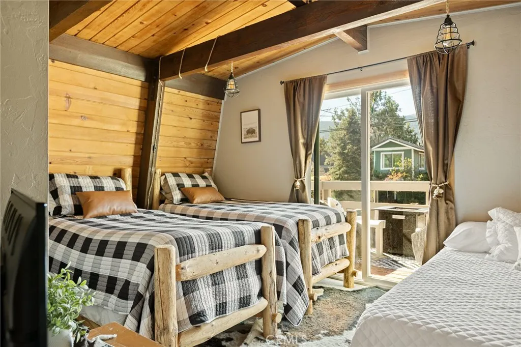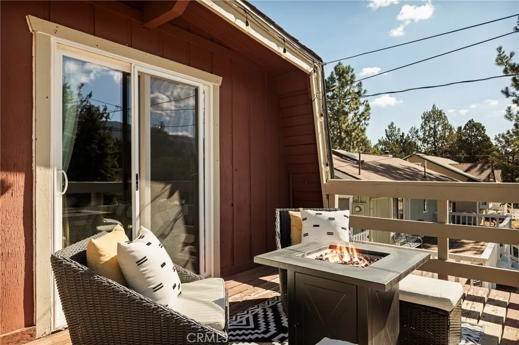 Escape to the mountains in this charming gambrel barn-style home, partially furnished and move-in ready. This cozy 2-bedroom, 1-bath retreat features a stone wood-burning fireplace, an upgraded kitchen with rugged granite countertops, newer stainless steel appliances, and farmhouse-modern touches. Other updates include a newer roof and dual-pane windows. Two spacious bedrooms provide plenty of room for guests, making it perfect for a vacation or income-producing rental. Relax on the inviting front porch with your morning coffee, or unwind on the balcony while taking in stunning snow-capped mountain views. Enjoy the added convenience of flat streets and a level driveway—ideal for easy access and parking during snowy seasons. Just munutes from Big Bear Lake, the village, and ski resorts, this home combines comfort, style, and convenience for the ultimate mountain getaway or investment opportunity