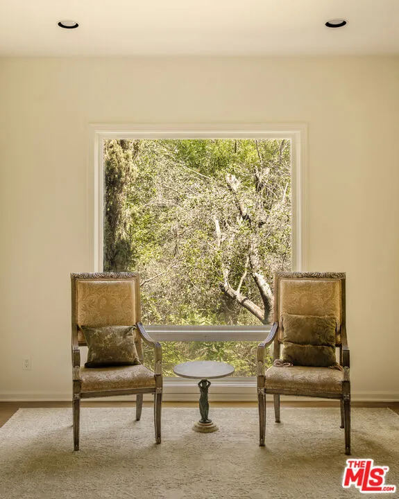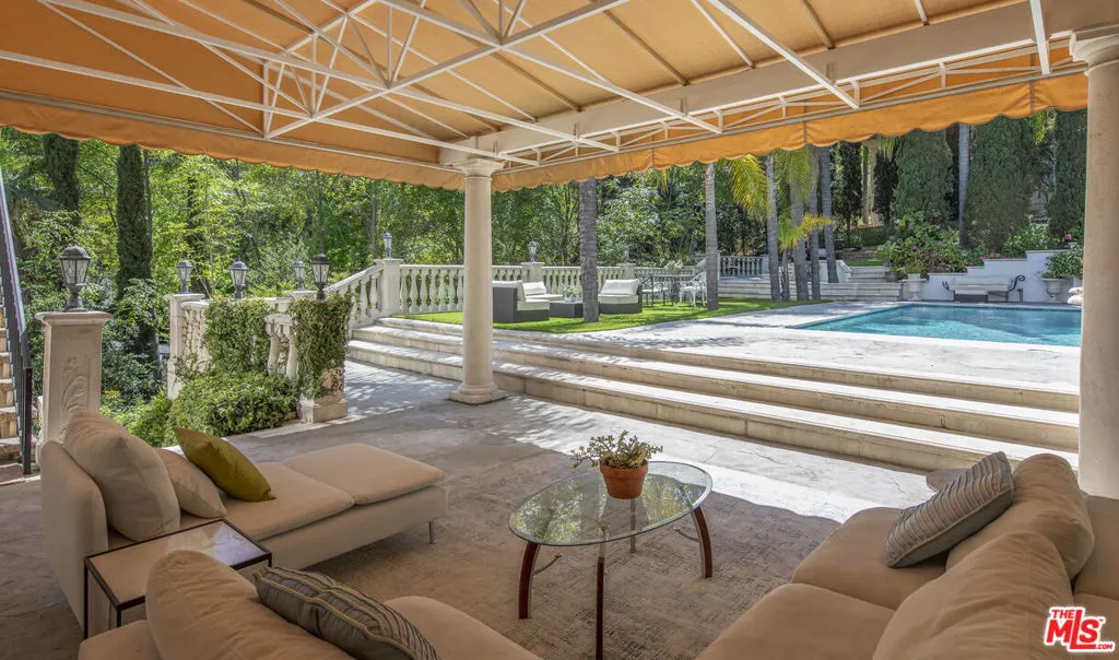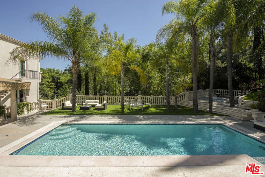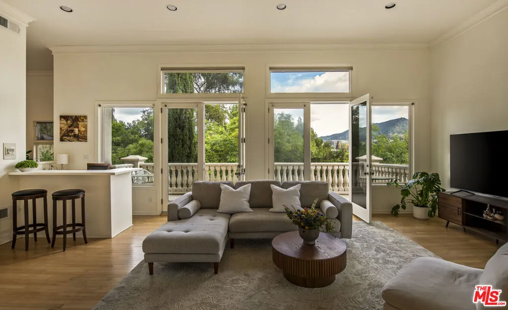 Privately gated at the end of a quiet cul-de-sac, this custom Mediterranean estate sits on an almost one-acre usable lot in the heart of the Hollywood Hills. A dramatic motor court and lush, resort-like grounds create an immediate sense of arrival, with sweeping views, a sparkling pool and spa, waterfall, and a white Italian gazebo setting a serene backdrop for entertaining.Spanning over 5,000 square feet, the home offers 5 bedrooms and 6 baths with soaring ceilings, warm maple floors, and beautifully scaled living spaces. Sunlit living and family rooms are divided by a dual fireplace and full bar, while the gourmet kitchen with generous breakfast area flows effortlessly into the formal dining room.The lower level is anchored by a luxurious primary suite with fireplace, private balcony, spa bath, and expansive walk-in wardrobe. Two oversized guest suites open directly to the pool, complemented by a separate office/library wing and maid's quarters. Complete with a 3-car garage and sauna, this private estate offers exceptional scale and versatility just minutes from Universal Studios and the best of Los Angeles.