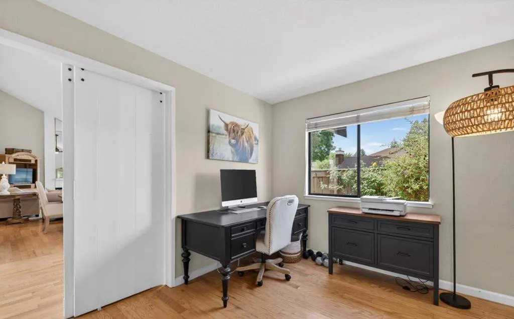 Incredible attached single level home in Morgan Hills exclusive Carriage Square development. This light and bright home includes, 3 bedrooms and 2 baths; primary suite features walk-in closet, sliding door to back yard, updated bath with new lighting, refinished shower over tub. This home features hardwood floors, remodeled kitchen, carpeted bedrooms, stunning back yard with fountain and lighting, central heat and AC, 2 car attached garage, with car charger, indoor laundry, community pool, green space and play area. The third bedroom makes and ideal home office. Close to downtown Morgan Hill dining, shopping, entertainment. You will love this!