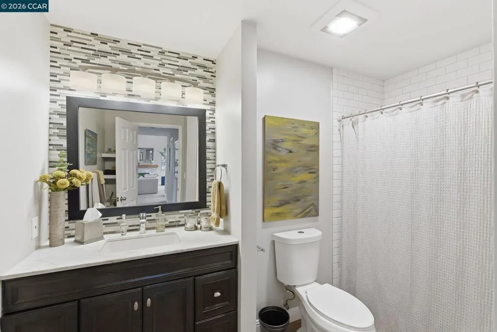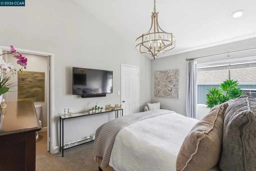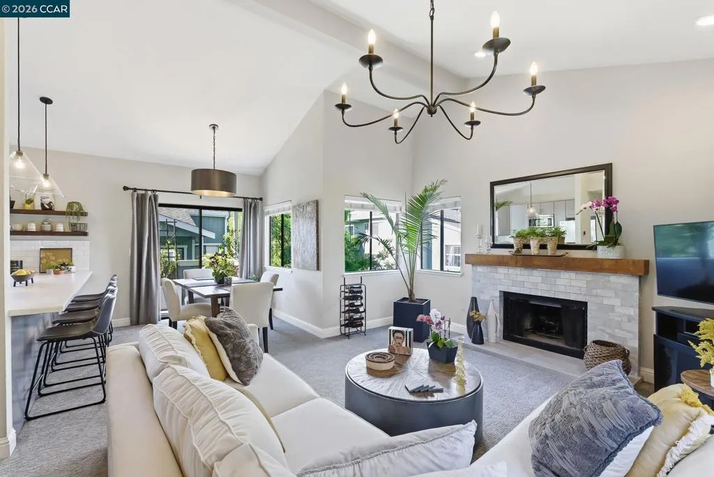 Step into this beautiful, light-filled Penthouse Condominium where style and comfort come together effortlessly. Designer finishes and custom lighting throughout add a touch of elegance, while the cozy gas fireplace place creates the perfect setting for relaxing evenings at home. Soaring cathedral ceilings and an open-concept design create a bright, airy atmosphere that feels both expansive and inviting. The spacious walk-in closet offers both convenience and a sense of everyday luxury. Enjoy your own private deck—an ideal retreat for morning coffee, fresh air, or a small garden oasis. Just beyond your door, the community pools offer a peaceful escape, perfect for unwinding and enjoying sunny days. Additional highlights include a private garage with ample storage and a dedicated parking space for ultimate convenience. Ideally located near the charm and vibrancy of downtown Martinez, with easy access to Highways 4 and 680, this home places you close to shopping, dining, and everything you need—while still offering a peaceful place to come home to.