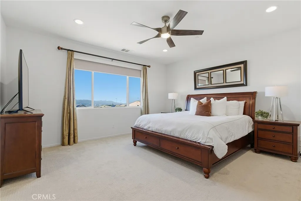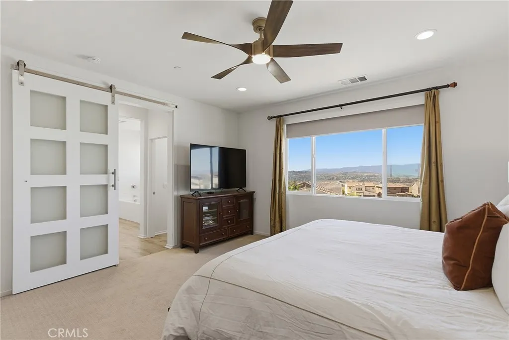 Welcome to a refined and elegantly upgraded residence, perfectly positioned in the highly desirable Skyline community of Santa Clarita, this beautifully upgraded home offers the perfect blend of modern luxury, comfort, and breathtaking views. Boasting four spacious bedrooms, a versatile bonus room, and generous living spaces throughout, this home is thoughtfully designed for today’s lifestyle.Step inside to an open-concept layout filled with natural light, enhanced by remote-controlled blinds and a calming neutral palette. Elegant hardwood flooring flows through the main living areas, complemented by upgraded carpet for added comfort. The expansive great room seamlessly connects to the dining area, creating an ideal space for everyday living and entertaining.The chef-inspired kitchen features sleek granite countertops, white shaker cabinetry, a large walk-in pantry, modern stainless steel sink, recessed lighting, and stylish pendant lighting—designed for both function and sophistication.Step outside to a beautifully manicured backyard with panoramic views of the Santa Clarita Valley, offering a serene setting for indoor-outdoor living, entertaining, or relaxing.Upstairs, an oversized loft provides flexible space for a game room, media room, or lounge. Three secondary bedrooms and a full bathroom offer ample room for family or guests. The private primary suite is a true retreat, featuring a sliding barn-style door leading to a spa-like bathroom with soaking tub, walk-in shower, dual vanities, and a custom walk-in closet.Additional highlights include a two-car garage with direct access, EV charger, owned solar, and premium upgrades throughout.Residents enjoy resort-style amenities including pools, clubhouse, gym, barbecue areas, splash pad, parks, and scenic hiking trails. Conveniently located near top-rated schools, shopping, and with easy access to the 14 Freeway, this home delivers an unmatched lifestyle of convenience, sophistication, and scenic beauty—where every day feels like a retreat.