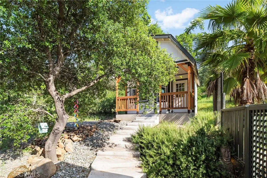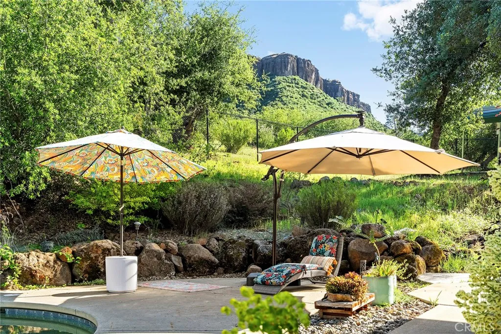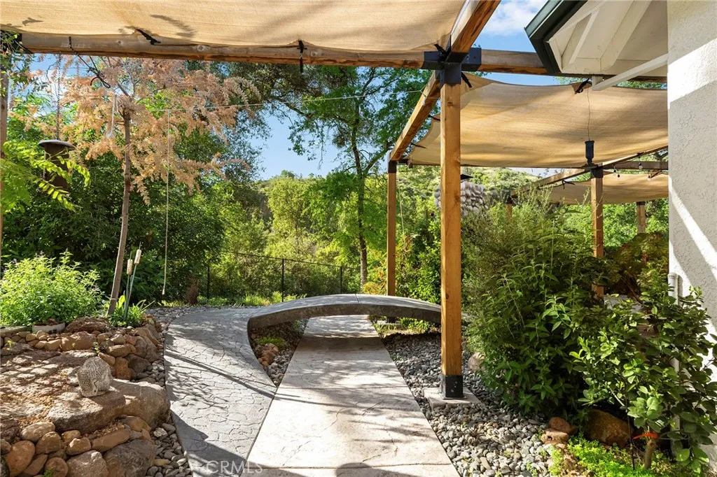 Tucked along the coveted Honey Run Road, just 1.5 miles from the newly rebuilt iconic Honey Run Covered Bridge, this beautifully designed 3-bedroom, 2-bath home offers 1,958 square feet of thoughtfully curated living space on 3.97 acres. Built in 2002, this property blends comfort, creativity, and functionality in a truly one-of-a-kind setting. As you arrive, you’re welcomed by a striking cactus garden in the front of the home. Just beyond, the outdoor entertaining area features a custom pizza oven and fireplace—perfect for gathering year-round—while taking in views of Castle Rock. From there, follow the custom hand-carved concrete pathways along the side yard, featuring intricate designs of lily pads, koi fish, and garden elements that lead you across a decorative concrete bridge—an artistic and truly one-of-a-kind feature—while passing lush landscaping and raised garden beds. The backyard is a private retreat designed for both relaxation and entertaining. Enjoy a newer custom covered patio overlooking the salt water pool, along with a separate hot tub for year-round use. Inside, the open floor plan offers spacious living with abundant natural light and expansive windows that frame the surrounding views. The living room features a cozy gas fireplace and ample space for gathering and entertaining. The kitchen is designed for both function and style, complete with granite countertops, stainless steel appliances, generous counter space, and bar seating, all enhanced by a skylight that fills the space with natural light. The primary suite is thoughtfully positioned on one side of the home w/oversized en suite bathroom with w/garden tub and separate shower. The additional bedrooms are located on the opposite end, offering a sense of privacy and separation. Additional improvements include a newer water filtration system, well pump, and an AES whole house solar system for energy efficiency. A detached, fully finished studio offers flexible space for an office, art studio, or guest overflow—complete with a loft, closet, and mini-split system. There is also a metal structure providing ample covered storage or parking. Surrounded by beautiful gardens, organic raised beds, and expansive Butte Creek Canyon views, this nearly 4-acre property offers a peaceful lifestyle with minimal light pollution—perfect for stargazing. Enjoy a welcoming community known for its shared gatherings, art, and music, all while being just minutes from Chico’s shopping and dining.