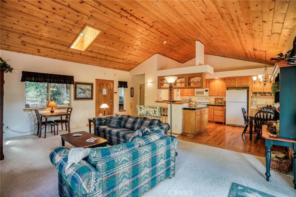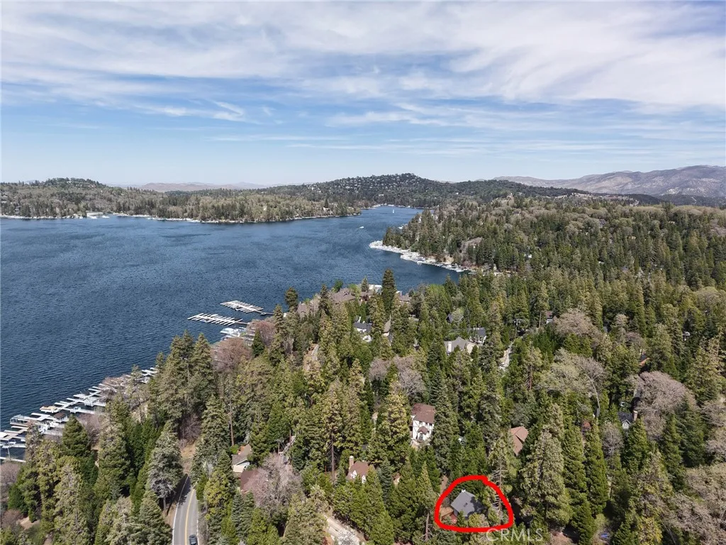 First time on the Market! Tucked in the forest in the heart of Lake Arrowhead in the magical alphabet lanes with Lake Rights and just 8 houses from the lake! This private and secluded cabin on a private road has been carefully and lovingly maintained by the original owner and embodies the perfect mountain retreat. Walk to the Lake path and Lake in less than 5 minutes. Walk to the village! Starting with the woodsy exterior and continuing into the interior where natural light, skylights, forest textures and stone make this home the one you have been waiting for! Spacious living area with soaring cathedral ceiling, converted gas Fireplace and skylights and windows to bring the forest in! The beautiful stone and brick floor-to-ceiling fireplace is the home’s centerpiece showcasing the rare beauty of natural stone and providing the perfect gathering space for friends and family. Directly outside is a large, inviting deck with areas for al fresco dining, reading, watching the wildlife or just listening to the breeze rustling through the pines. Beautiful forest views! The living area flows into the open dining area and kitchen with pantry with décor that mirrors nature’s crisp and warm forest hues. Hardwood flooring in the entry and kitchen and dining area complement the home with its warm wood texture. The primary ensuite is a private sanctuary with a beautiful stone gas fireplace, private deck with swing and attached full bath. Downstairs are also two private bedrooms or opportunities to pursue your private lifestyle choices for studios, fitness or wellness rooms and a full bath. The Laundry Room is conveniently located next to the bedrooms. The exterior of the home was freshly painted in late Fall 2025 and the interior is immaculate! There is also a Notice of Completion for all Section One Wood Destroying Pest work. Furnished per Positive Inventory List! Dual Pane windows and a spotless single car garage. There is a 2-3 car parking pad in front of the garage and additional parking below on A Lane. Most importantly, the home has lake rights to private Lake Arrowhead just a few minutes’ walk away. This woodsy hideaway would make the perfect mountain home, vacation home, rental or investment property. Come on up and enjoy the fresh mountain air and all Lake Arrowhead has to offer – the beautiful, private lake, the newly renovated Lake Arrowhead Village, Sky Park, Snow Valley Ski Resort and acres of National Forest. Make your Lake Arrowhead Dream a Reality!