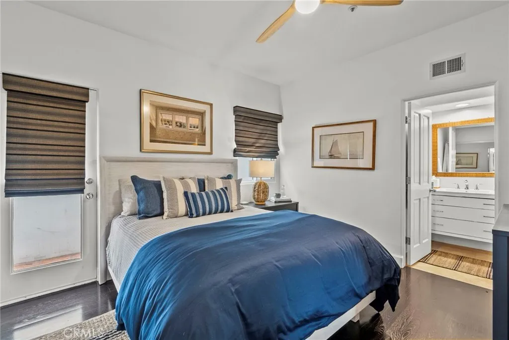Experience effortless beach living in this beautifully designed end-unit townhome, ideally located in the heart of downtown Manhattan Beach. With ocean views, abundant natural light, and multiple outdoor spaces, this home offers a seamless blend of style, function, and coastal energy. The entry level features two spacious bedrooms, including a serene primary suite with a walk-in closet, spa-like bath, and direct access to a private patio. This lower outdoor space is both versatile and unique, perfect for creating an outdoor gym, lounge retreat, or organized gear area with room for bikes, boards, and more. A second en-suite bedroom and conveniently located laundry complete this level. Upstairs, the main living area is bright and open with soaring ceilings, expansive windows, and a clean, modern aesthetic. The kitchen, dining, and living spaces flow effortlessly to an ocean-view terrace, ideal for entertaining or relaxing with coastal breezes and sunset skies. A spiral staircase leads to a lofted flex space with a closet and additional ocean views, offering the option for a home office, creative studio, or potential third bedroom. Positioned on the quieter 11th Place side of the building, this home offers both privacy and proximity. Enjoy walkability to downtown dining, shops, the greenbelt, and the beach, all just moments from your front door. Complete with a two-car garage plus an additional parking space, this is a rare opportunity to own a light-filled, flexible coastal home that lives as well as it looks.