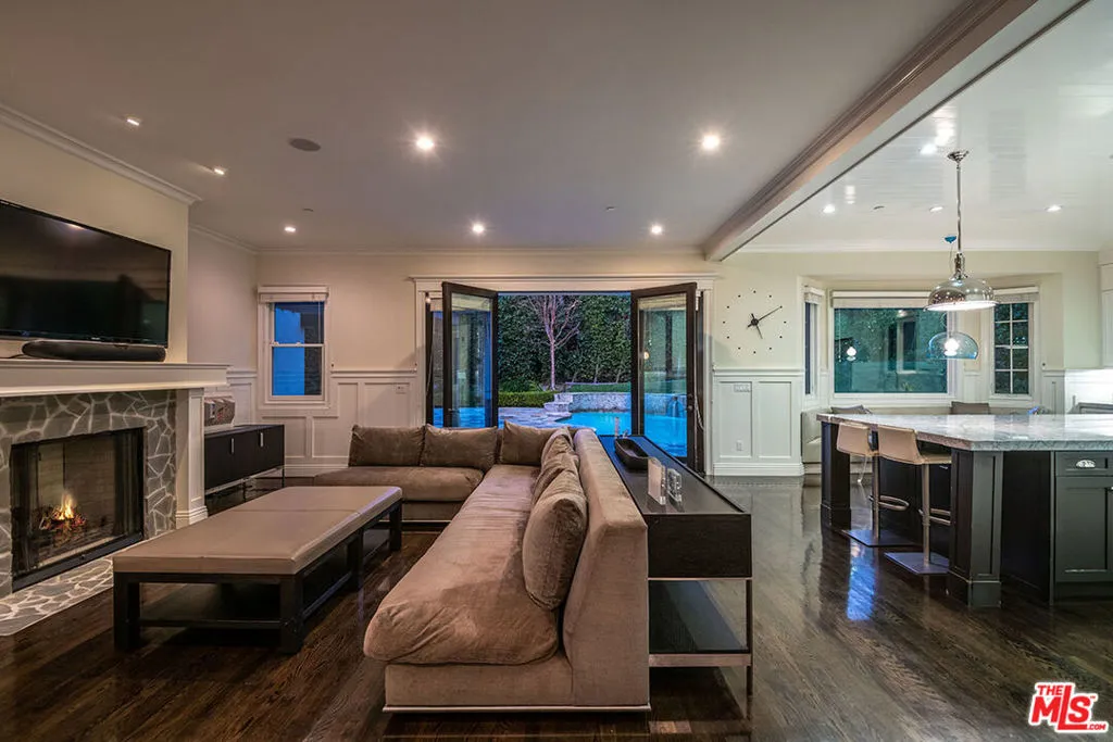 Nantucket showplace overlooking Lakeside Fairway! Designed with flawless craftsmanship and relaxed East Coast character. Airy bright interiors, bay windows & lush views. Light-filled entry boasts amazing 30' ceilings. Look for details such as beadboard, crisp panel work, crown molding, coffered ceilings and gleaming hardwood floors. Fireside great room open to chef's kitchen with gorgeous Cararra marble counters, s/s appliances, large island and built-in banquette. Butler's pantry with wine frig leads to separate dining room. Living room has Absolute Black granite fireplace. A home designed for entertaining! Upstairs, en suite family beds & baths. Master with sitting room, fireplace, dream walk-in closet and balcony. Downstairs, en suite/office or maid's with private entrance. Secluded outdoor retreat offers loggia with cozy fireplace for cool evenings, wet bar and sparkling pool/spa/waterfall. Security system inside & out. Frank Sinatra & Amelia Earhart called this lane home.