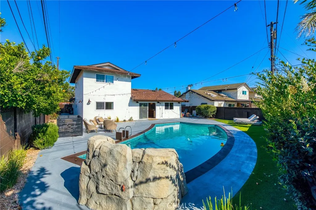 Welcome to a stunning two-story home that perfectly blends modern design with warm, inviting tones throughout. Nestled at the end of a quiet cul-de-sac, this residence offers exceptional privacy, minimal traffic, and a true sense of peaceful living. Thoughtfully upgraded with high-end appliances and stylish finishes, every detail in this home is designed for both comfort and elegance, including a built-in microwave and a premium Golden Ramsey range. The spacious primary suite serves as a private retreat, while the home also features an open-concept living room and kitchen—perfect for everyday living and entertaining. Step outside to your own backyard oasis—complete with a sparkling pool, ideal for relaxing weekends or hosting gatherings year-round. Major improvements include a new roof and new AC, providing both value and peace of mind for years to come. Perfectly situated in a prime location, this home offers easy access to shopping, dining, top-rated schools, and major freeways—making everyday living incredibly convenient. A rare opportunity to own a home that combines location, lifestyle, and modern comfort all in one.
