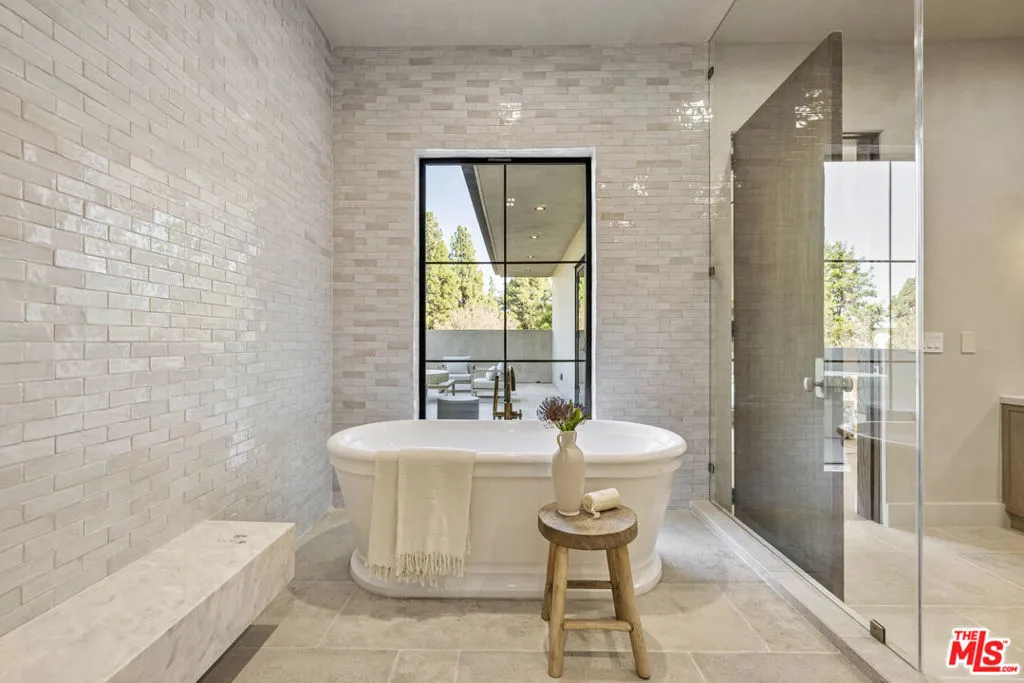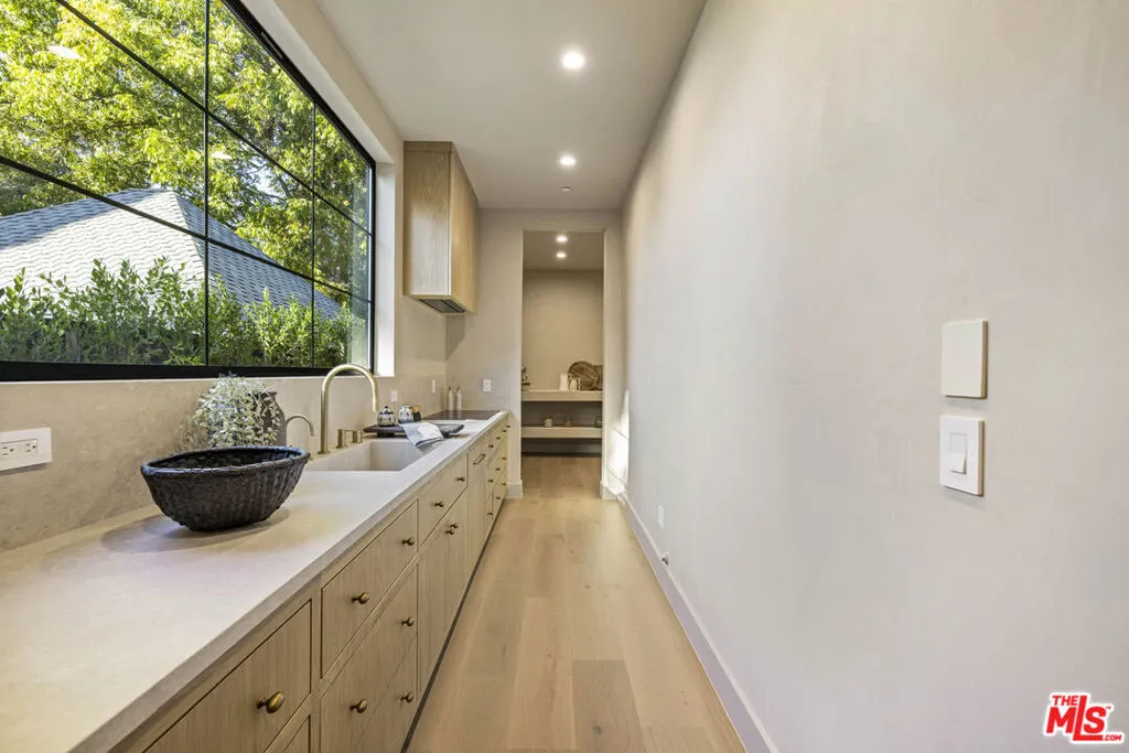 AVAILABLE FOR SALE AND LEASE. Welcome to Casa Verde, one of the largest and most extraordinary homes ever built south of the Boulevard in Sherman Oaks. Set on an expansive 13,000 sq ft lot, this 5-bed, 7-bath estate blends timeless European influence with high-end contemporary design, featuring hand-applied limewashed walls, a sculptural plaster staircase, and natural light pouring in from every angle. Step through the custom oversized pivot door and you're immediately met with soaring ceilings and a floor plan crafted for true indoor/outdoor entertaining. A large custom bar sits at the center of the home, creating a stunning focal point and seamless flow into the expansive dining area, where floor-to-ceiling sliders open to a private outdoor sanctuary anchored by a limestone fireplace. The chef's kitchen features custom white oak cabinetry, travertine counters, and panel-ready appliances that disappear into the design. A hidden butler's kitchen with its own cooktop, sink, dishwasher, and walk-in pantry keeps prep work tucked away when hosting. The generous family room opens to the oversized backyard with ample patio space, an outdoor kitchen, large pool, two covered cabanas, and a full bathroom. The main floor is completed with a large home theater, office, bedroom and reading nook. Upstairs are 4 additional bedrooms, each with its own en-suite bath and walk-in closet. The oversized primary suite offers a floor-to-ceiling stone fireplace, two balconies, an expansive walk-in closet, and a private bonus room ideal as a yoga studio, nursery, or second closet. The spa-like bathroom features a large zellige-tiled rain shower, freestanding tub with mountain views, makeup vanity, and dual water closets.Tucked in an exceptional walkable pocket, Casa Verde is moments from some of the city's best restaurants and coffee shops, Anajak Thai, Bacari, The Blvd, Cream, and more, as well as The Buckley School. This is a rare opportunity to own a statement property defined by scale, design, and craftsmanship.