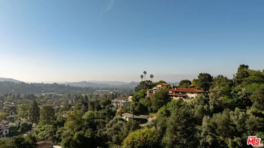 Tucked at the end of a quiet cul-de-sac in Glendale's coveted Upper Rossmoyne, this private mid-century retreat captures the essence of California modernism with clean lines, volume, and a seamless connection to its natural surroundings. Set beyond a long driveway and overlooking a grove of mature oak trees with city views beyond, the home offers a rare sense of calm in a tucked-away hillside setting. Sun-dappled light pours into the living room, where a vaulted ceiling and fireplace anchor the space, and large picture windows frame leafy vistas throughout. The open-concept design flows easily into the dining area and remodeled kitchen, creating a cohesive space for everyday living and entertaining. Currently configured as a spacious two-bedroom residence, the home was originally designed as three bedrooms, offering flexibility for those seeking to reimagine the layout. A private patio extends the living space outdoors, offering an easy setting for morning coffee or relaxed evenings under the trees. Thoughtful updates enhance both comfort and style, including the remodeled kitchen and backyard, new HVAC system, tankless water heater, and a Level 2 EV charger. Original details such as hardwood floors, expansive windows, and period hardware maintain the home's architectural integrity. A detached two-car garage provides additional possibilities, easily suited for use as a studio, creative workspace, or future ADU. A rare opportunity to own a classic mid-century home built circa 1962 in one of Glendale's most sought-after hillside neighborhoods.