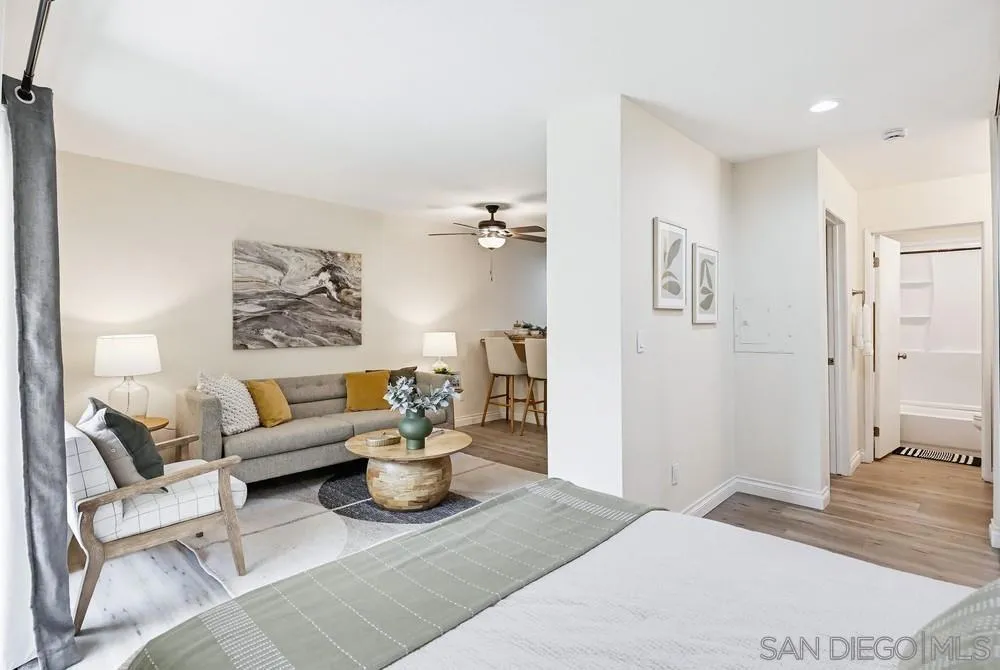 Location, Location! Nestled up in the hill overlooking the Riverwalk golf course and less than 2 miles to Mission Bay! West Mission Valley, centrally located around the corner from Old Town and Mission Hills. This Move in ready, remodeled ground level condo offers new recessed lighting, kitchen and bath upgrades including stainless steel appliances and cabinetry, LVP flooring, new dual pane sliding patio door, brand new mini split for heating and A/C, making the perfect inside temperature. Layout feels open and flows easily with a separate bedroom area off the main living room. Private patio to enjoy peaceful days or nights overlooking a quiet, calm waterfall and pond. Sit down views of the pool. The perfect living space with modern touches and comfort. Complex offers tennis courts, pickleball, basketball court, BBQ areas, exercise room, rec room, leisure walking with multiple ponds, pool, hot tub, sauna and dog run. Fashion Valley mall, trolley, and dining all within walking distance. Low HOA.