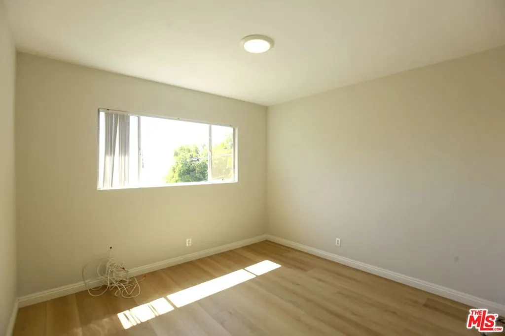 The home opens into a generously sized living area, bathed in natural light from expansive windows that create an airy, inviting atmosphere. A sliding door enhances the space, leading to your kitchen and a charming nook perfect for a sunlit breakfast table or dining setting. Down the hallway, you'll find all three bedrooms and both bathrooms. To the right is the primary bedroom, complete with a large walk-in closet, private balcony, and an ensuite bathroom. The hallway also offers extra storage. The second bedroom is situated in the middle of the hall and features closet space and an abundance of natural light. At the end of the hallway, you'll find the second bathroom and third bedroom, which features great windows, a closet, and a classic Los Angeles view with city sights and palm trees. The building features a shared outdoor seating area with a barbecue and on-site laundry facilities. The sunny seating area is a perfect place to relax and get some alone time. Additionally, the property includes a parking lot with assigned parking available. Come take a look, and you might just find your next home.