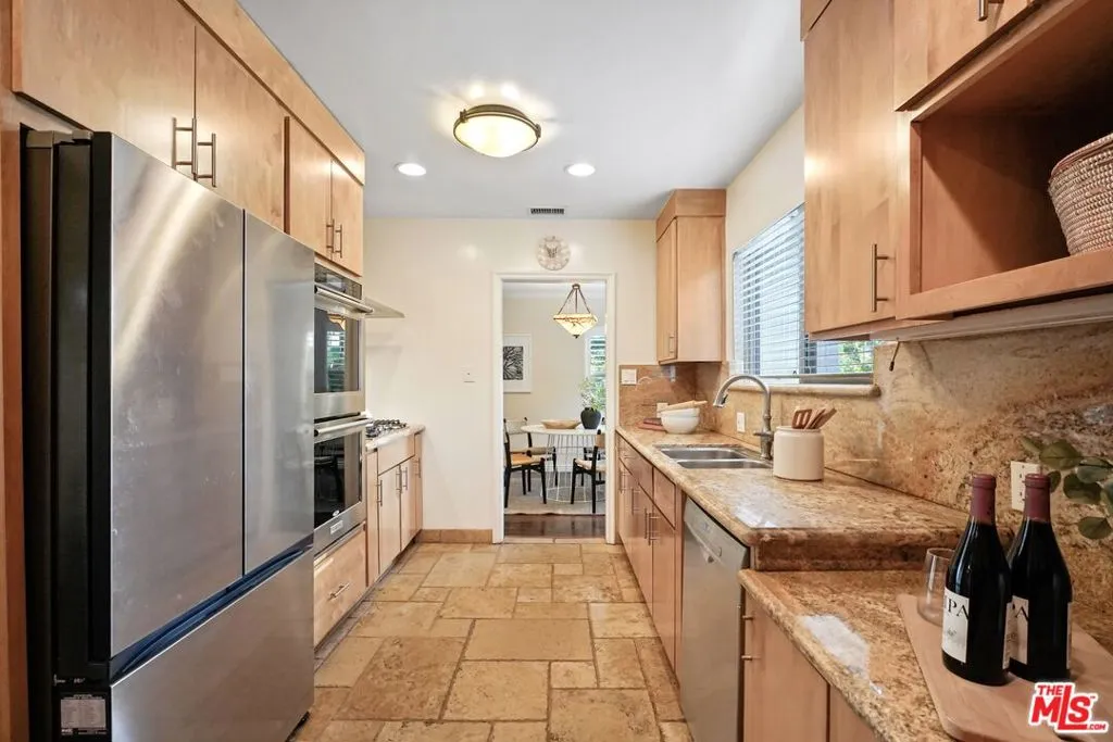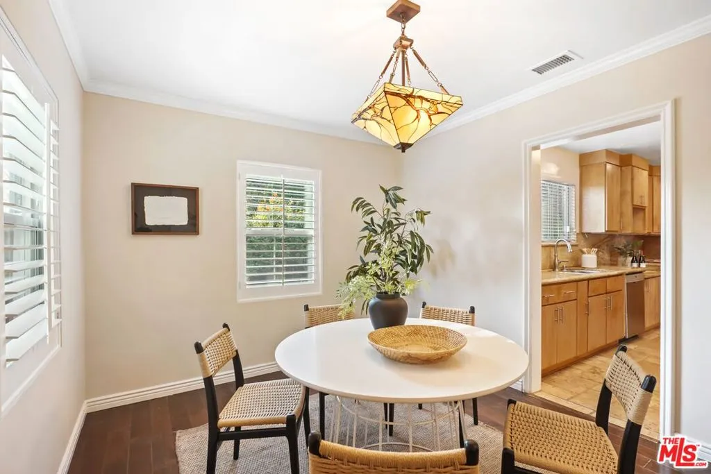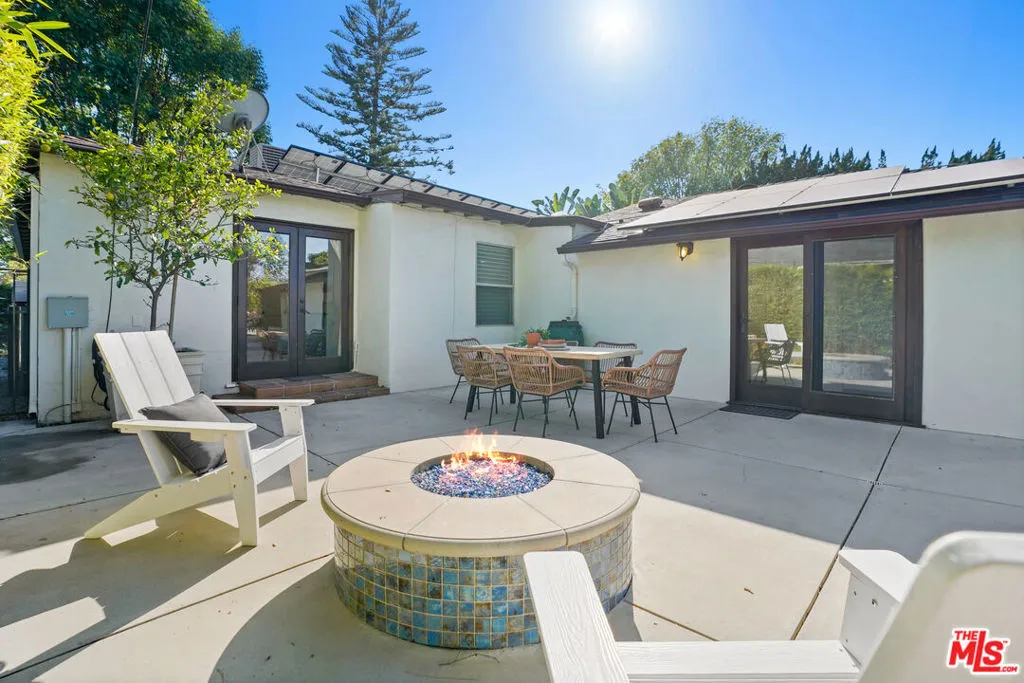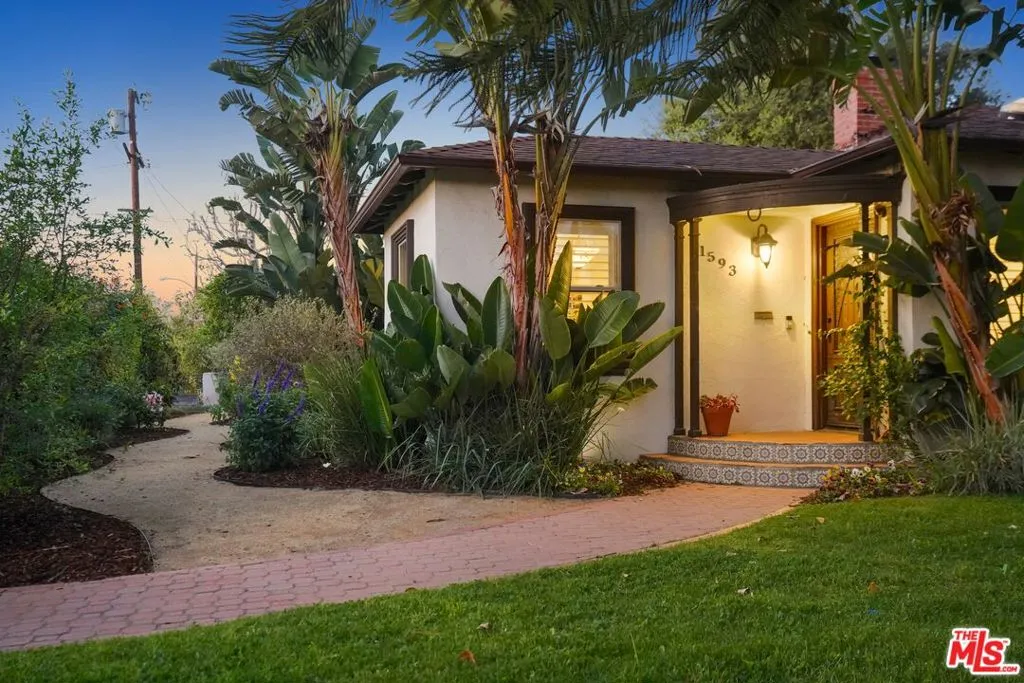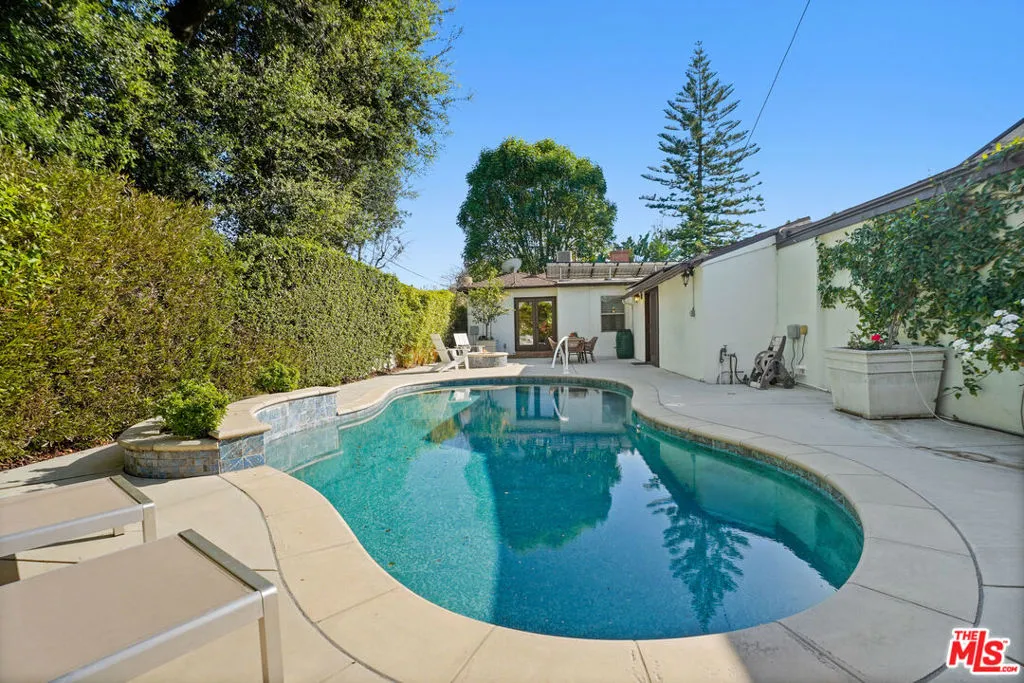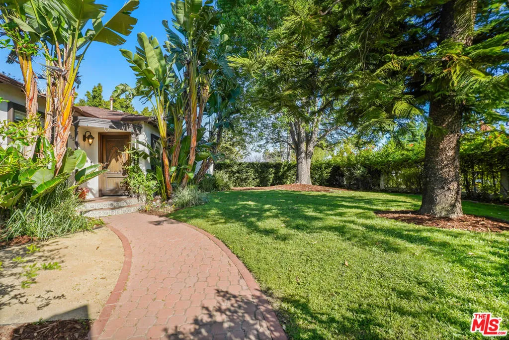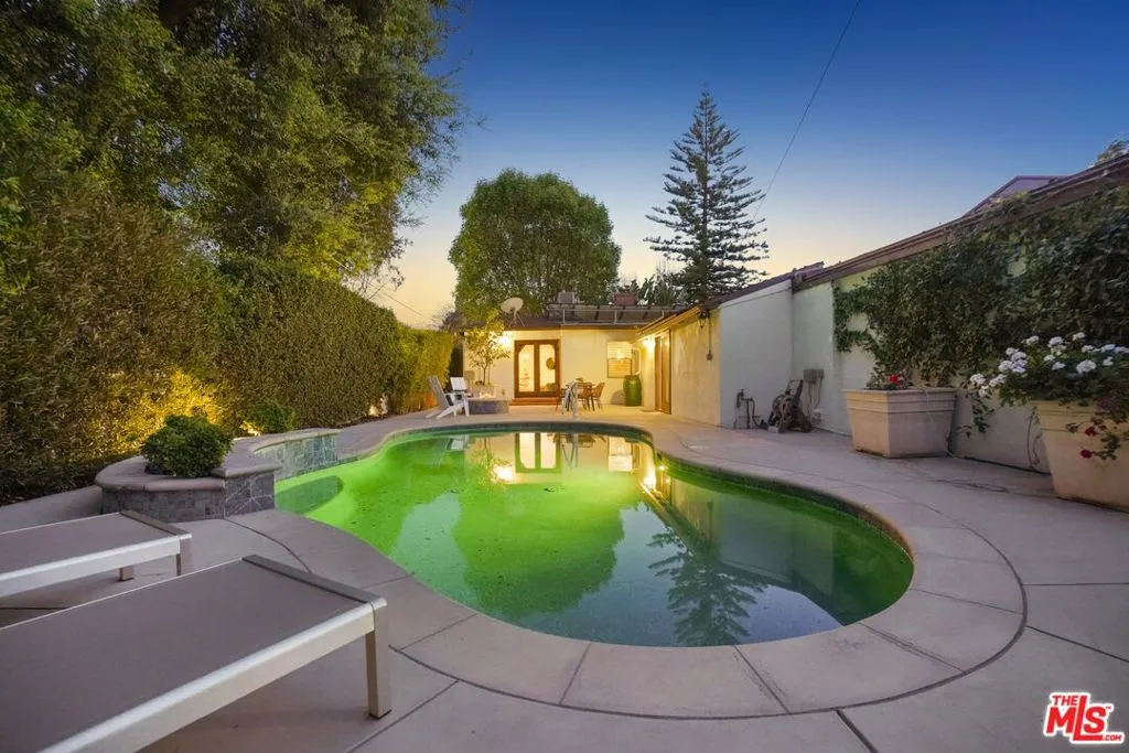 A sublime expression of classic California living, this spacious, updated single-story residence is ideally sited on a sweeping corner lot in the highly sought-after Colfax Charter School District. With generous scale, inviting living spaces, and a backyard designed for the quintessential Southern California lifestyle, the home offers extraordinary comfort and easy, relaxed living and entertaining in one of Valley Village's most beloved neighborhoods. The exterior presentation is a lush fusion of floral, greenery and towering trees with a high hedge enhancing both presence and privacy. Inside, a light-filled floorplan unfolds with gracious transition from room to room. Espresso wood and rich travertine grace the living areas. The remodeled kitchen is a cook's delight adorned with fine stainless steel appliances and adjoining breakfast room. Glass sliding doors bring the outdoors in and give way to a private backyard oasis. Replete with alternating colored pool with waterfall, firepit and dining and lounging patio, it's the ideal venue for warm, relaxed poolside lounging by day, cool gatherings and al fresco entertaining by night. Highlights include a direct access two car garage, solar panel system, Halo 5 water purification system, tankless water heater, speaker system, and mature fruit trees. Four bedrooms and two baths including a lux primary suite with exceptional walk in closet, spa inspired bath and direct pool access provides comfortable accommodations for family and guests. Ideally located just moments from NBC, CBS, Warner Bros., Disney and Universal Studios, beloved Valley Village Park, and the vibrant dining and arts scene of the NoHo Arts District. Here is an idyllic, vibrant tree-lined community and wonderful place to call home. Welcome!