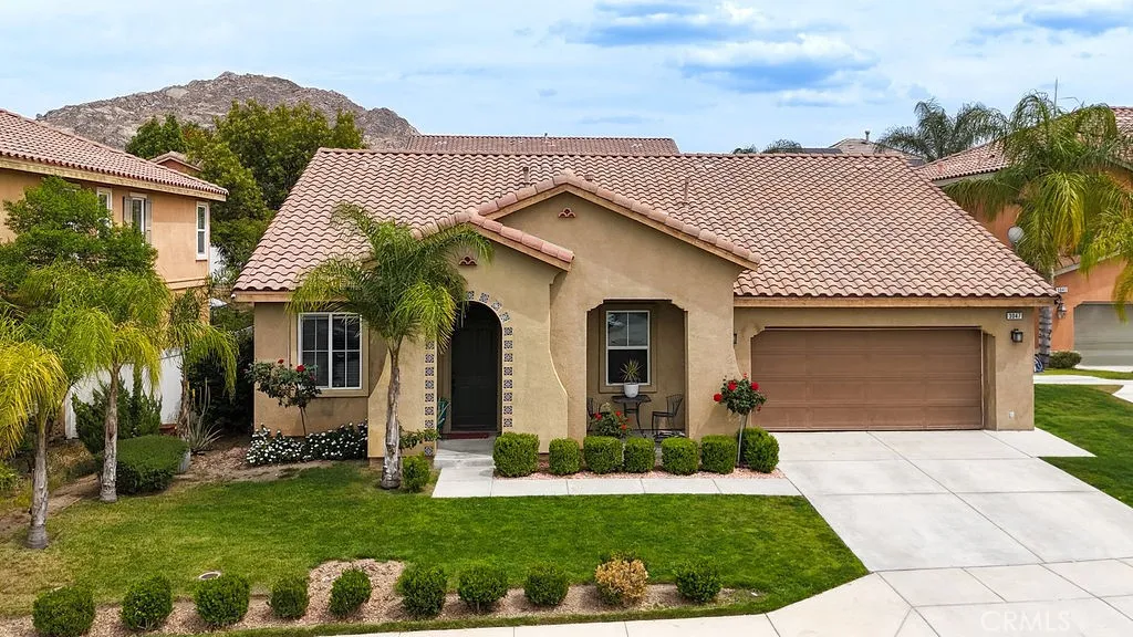 WELCOME HOME to this beautiful 4-bedroom, 2-bath home tucked away on a cul-de-sac in a family-friendly Perris neighborhood, with lovely mountain views. From the moment you arrive, you will appreciate the great curb appeal, Spanish-style architecture, and inviting front porch. Inside, the homeowner has tastefully converted the front living area into two flexible bonus rooms currently used as a playroom and an additional bedroom. Continuing down the hall, you will find an open-concept kitchen, dining area, and family room designed for comfortable everyday living and easy family interaction, with ample storage and generous counter space for meal prep and entertaining. The spacious primary suite features an ensuite bathroom with dual sinks, a soaking tub, and a walk-in shower, while three additional bedrooms share a well-appointed hall bathroom. Step outside to a backyard with plenty of room for kids and pets to run and play, along with a patio area perfect for outdoor entertaining. Conveniently located near parks, Lake Perris, shopping, and entertainment, this home is ready for its new owner—COME SEE IT TODAY!