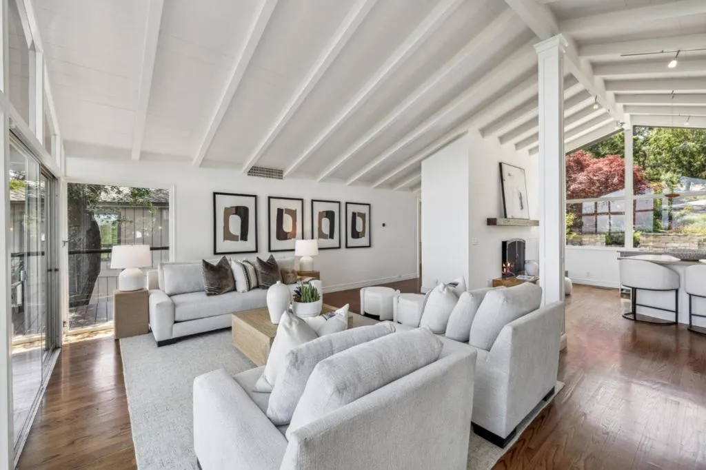 Rarely available estate, located in the highly sought-after Westridge neighborhood of Portola Valley. This lovely home is set on 3.86 serene acres w/ majestic oaks and offers a panoramic view of the SF Bay from Stanford to Mount Diablo. Enjoy a picturesque vista from the main home and newly built, stunning ADU. A gated driveway escorts you to a light-filled home highlighted by an open concept floorplan with high beamed ceilings and a wall of sliding doors to an expansive deck for al fresco dining and entertaining. Enjoy peaceful days and quiet nights filled with sparkling lights from the bay. The main home, containing 5bd/ 5ba, private office, family room and den one primarily one-story. The 1bd/1ba ADU has a spectacular deck with views too! Adding to the appeal is the sprawling grounds including a resort-like pool, hot tub, fire pit, gazebo, greenhouse, chicken coop and 2 fenced dog runs. Family/friends can gather throughout the exquisite property at numerous quaint outposts. This home is ideal for entertaining. Easy access to 280, Stanford University, Westridge hiking trails, shops and restaurants. Just 1.5 miles to the Ladera Shopping center, a 5-minute drive to Interstate 280, and access to top-ranked Portola Valley schools (buyer to verify eligibility)