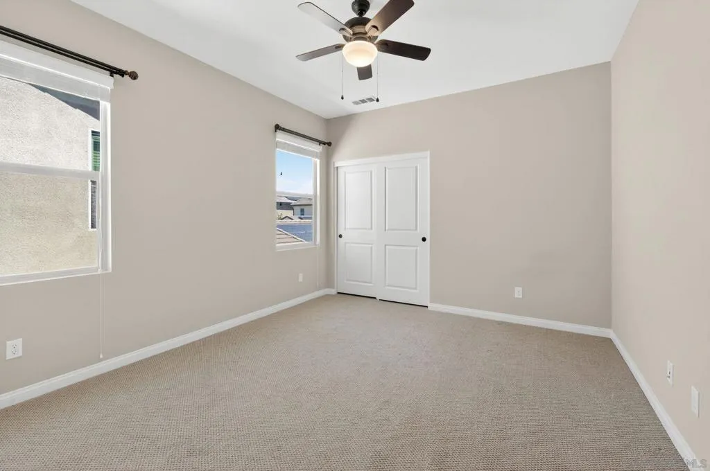 Welcome to sought-after Harmony Grove Village, where comfort, convenience, and community come together. This home offers a thoughtfully designed layout ideal for everyday living. The kitchen features a large center island with bar seating, stainless steel appliances, and ample storage, flowing seamlessly into the open-concept living and dining areas—perfect for both relaxing and entertaining. Custom built-ins enhance the dining room, living room, and primary bedroom closet, adding both style and functionality. The main level also includes luxury vinyl flooring and a convenient powder room for guests. Step outside to a private, easy-care patio space, ideal for outdoor dining. Upstairs, the spacious primary suite includes a walk-in closet and dual sink vanity. Two additional bedrooms share a Jack-and-Jill bathroom with dual vanities, offering both functionality and privacy. A dedicated laundry room with storage and an attached two-car garage provide added everyday convenience. Additional highlights include a water softening system and a sprinkler system, adding to the home’s efficiency and ease of maintenance. Residents of Harmony Grove Village enjoy access to community pools, spa, parks, playgrounds, BBQ areas, and miles of scenic walking and biking trails. A great opportunity to own in one of North County’s most popular planned communities!