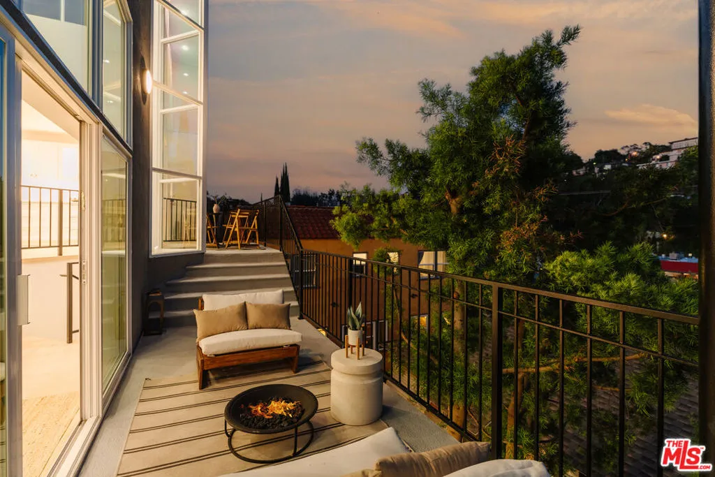 A stunning architectural main residence in prime Silver Lake, with a detached duplex at the rear of the property. Designed in 1989 by AIA architect J. Frank Fitzgibbons, the main home is a bold modern statement, now fully remodeled with refined Scandinavian-inspired finishes. Dramatic volumes, soaring ceilings, skylights, and expansive windows create light-filled interiors centered around a sweeping architectural staircase.The residence includes three bedroom suites, including a primary retreat with dual closets, a private balcony off the bathroom, and smart privacy glass that can transform the space from open and light-filled to completely private at the touch of a button. A flexible den offers an ideal space for a home office or creative studio, and a two-car garage provides direct access. At the rear, a detached duplex at 1625 Rendall Place offers two one-bedroom, one-bath units totaling 1,140 square feet, along with three enclosed garages. Privately positioned and income-producing, it adds exceptional flexibility to this rare Silver Lake architectural offering.