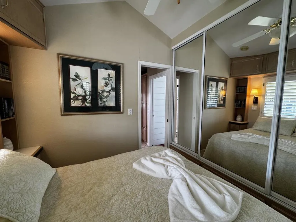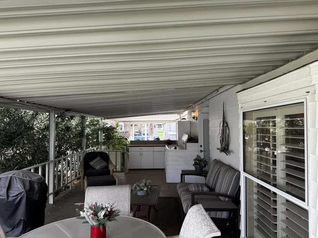 Outstanding Silvercrest Park Model situated on a desirable corner lot with scenic views of the putting course and golf course beyond. This well maintained home offers covered parking and a spacious deck complete with convenient auto roll down shutters perfect for enjoying outdoor living year-round. A washer and dryer are also located on the deck for added functionality.Inside, you'll find tile flooring throughout and plantation shutters in the living area, creating a clean and comfortable feel. The kitchen and bathroom feature upgraded cabinetry, while the bathroom has been tastefully updated with tile finishes. The generously sized bedroom provides ample storage, complemented by an additional storage shed on the property.This home truly has it all and is ideally located within the highly sought-after Rancho Casa Blanca community, where amenities abound. Residents enjoy free golf year round, a fully equipped fitness center, pickleball and tennis courts, and multiple pools and spas perfect for relaxation.The community also features a bocce ball court, billiard room, and horseshoe pits, offering endless opportunities for socializing and recreation. With two expansive clubhouses and four satellite buildings hosting over 60 clubs and classes, there's always something to enjoy.For added peace of mind, the community is guard gated with regular security patrols. Whether you're looking to stay active or simply unwind, Rancho Casa Blanca offers the perfect balance and with a golf cart, it's easy to explore and take full advantage of everything this vibrant community has to offer.