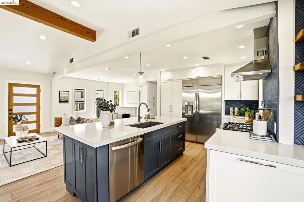 Reimagined Contemporary in the Heart of Glenview. Thoughtfully rebuilt from the studs up by a design-focused couple, including a structural engineer, this Glenview home blends modern comfort with everyday ease. Soaring cathedral ceilings, a striking floating gas fireplace, and wide doors opening to a private rear garden with level lawn and play structure create a setting made for gathering and good living. The chef's kitchen features a large quartz island, custom cabinetry, stainless appliances, and a pot filler, while four bedrooms, two additional flex rooms, and sanctuary baths, including a deep soaking tub, offer space that adapts to every need. A lower-level den, dedicated laundry, and garage with workshop add flexibility, while seismic improvements and tankless hot water provide lasting peace of mind. Steps from Paulista Brazilian Cafe, Marzano, and Bellanico, close to Glenview Elementary, and with quick Bay Bridge access to San Francisco, this is Glenview living at its finest.