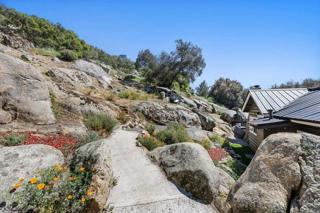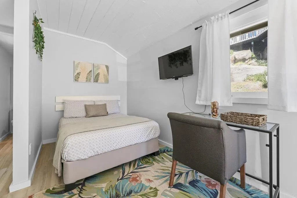 Charming and thoughtfully updated Descanso property tucked away on a quiet street, just a short walk to the elementary school. This unique property features a beautifully refreshed main home (approx. 750 sq ft) plus a detached studio (approx. 200 sq ft), offering flexible living space, guest potential, or a private work-from-home setup. The main home has been extensively updated, including an upgraded kitchen with newer appliances, updated laminate flooring, and fresh interior and exterior paint. The bathroom has been fully refreshed with new flooring, vanity, and fixtures, while the bedrooms feature recent improvements including new windows, sliding door access, ceiling fan, and modular wardrobe. Cozy up by the upgraded wood-burning stove or enjoy the added functionality of the laundry/utility area with stainless steel sink and all-in-one washer and dryer. Step outside to a wrap-around deck with updated wood and pillars, perfect for enjoying the peaceful surroundings. The property has also been improved with graded driveway access, concrete walkways, and recently pruned trees for a clean, open feel. The detached studio has been updated with a metal roof, new windows, and porcelain flooring—just awaiting final touches to the shower to complete the space. Additional features include a metal roof on the main home and a refreshed shed with newer roof and siding. A great opportunity to own a move-in ready home with added versatility in the heart of Descanso.