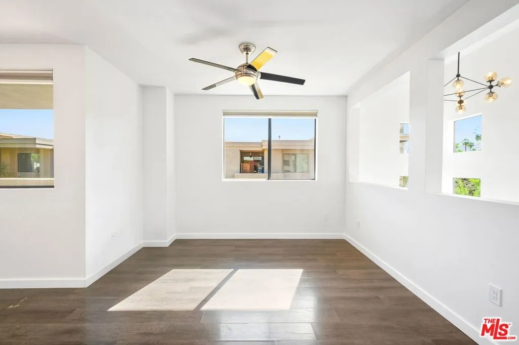 Live the true Palm Springs lifestyle in this highly sought-after 2 bed, 2 bath condo in Palm Springs, located in the gated community of Biltmore Colony in the desirable south end of town. This upper-level corner unit, known as the Tower Floor Plan, checks all the boxes offering privacy, style, and beautiful southeast-facing sunlight. Inside, the space feels open and elevated with high ceilings and a modern, airy layout that's ideal for both relaxing and entertaining. The kitchen features clean lines, ample storage, and a functional layout with breakfast bar seating that flows seamlessly into the dining and living areas. Both bedrooms are generously sized with walk-in closets, and en-suite bathrooms that are well-appointed with timeless finishes. There's also a dedicated in-unit laundry room. Step outside to your oversized private balcony perfect for morning coffee with the sunrise or unwinding later in the day while taking in that warm desert glow. One of the standout features is the direct-access one-car garage with additional storage, something that's hard to find in Palm Springs condos. Biltmore Colony is known for its resort-style amenities, including multiple pools and spas, private cabanas, BBQ and outdoor kitchen areas, a stylish clubhouse, fitness center, fire pits, and beautifully maintained desert landscaping and even a pet area. It's the kind of place that makes every day feel like a getaway. And the location? Tough to beat. You're directly across from the Ace Hotel and Koffi, with restaurants, shopping, and downtown Palm Springs just minutes away. All of this on fee land (you own it) with low HOA dues making it an ideal full-time residence, weekend getaway, or income-producing Palm Springs property. This is Palm Springs condo living done right.