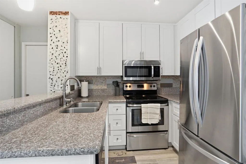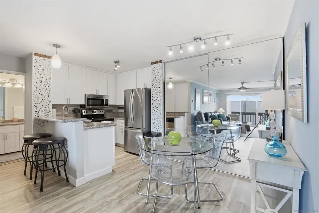 Life’s A Beach!!! The Plaza has one of the best locations in all of Pacific Beach. The beach and bay are only a few blocks away and the restaurants and shopping on Garnet are just outside your doorstep. This complex is loaded with amenities and feels like a luxury hotel as you enter! Here you can enjoy multiple pools, spas, saunas, tennis courts, an exercise/weight room, movie room, library, and more. Relax with a book while sitting next to the one of its serene water features and fountains. This well maintained and updated one bedroom unit features a great layout with an open feel in the living room and kitchen. The kitchen has matching stainless steel appliances, bar seating, a dining area with room for a 4-person table and a large pantry. Its west facing balcony off of the living room gets great sunlight and coastal breezes. It has a large bedroom and bathroom with double sinks and plenty of closet space. One of the bonuses of this unit is that it is conveniently located near the laundry room, one of the quieter pools/spas and also stainless-steel gas grills for your summer BBQ’s!