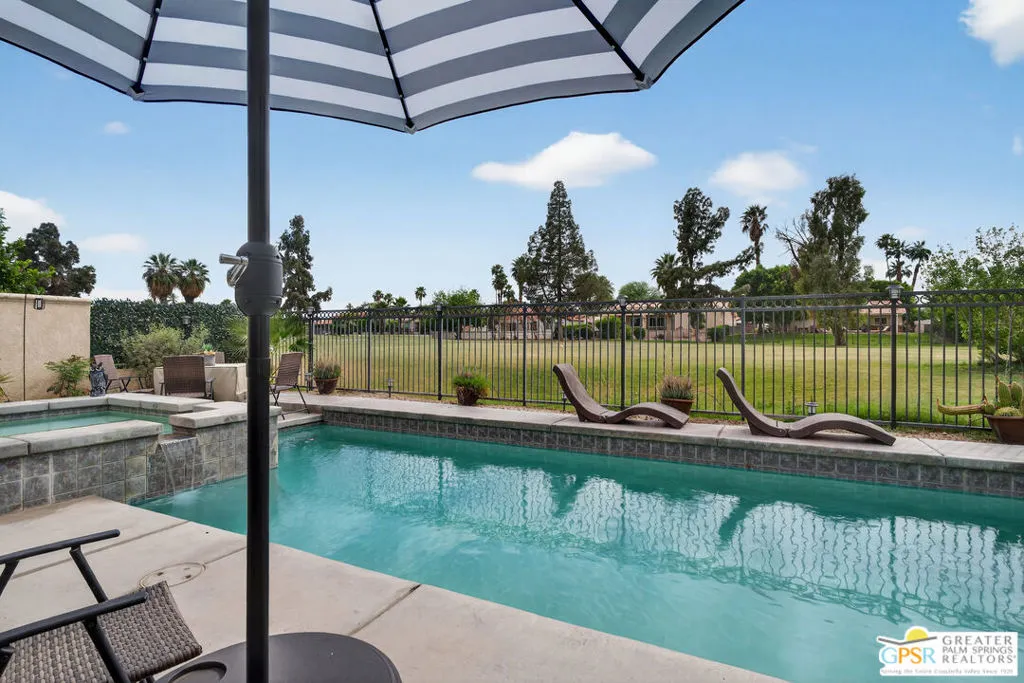 An Exceptional Investment Opportunity in Indian Palms Country Club. Located within one of Indio's most sought-after guard-gated golf communities where short-term rentals are permitted, this exceptional property offers the ideal blend of lifestyle and income potential. Perfectly positioned within walking distance to the world-renowned Coachella and Stagecoach festival grounds and just a short drive to premier shopping, dining, and entertainment, the location continues to attract strong and consistent guest demand. This five-star reviewed home is offered fully furnished and turnkey, ready for immediate enjoyment or rental use. The property has demonstrated a strong short-term rental history, making it an outstanding opportunity for buyers seeking both a personal retreat and potential income generation. Inside, an open-concept floor plan welcomes you with a spacious great room featuring tall ceilings, a gas fireplace, and seamless flow into the dining and kitchen areas. The thoughtfully designed layout includes 3 bedrooms and 3 bathrooms, including a private casita. There is a separate den that can easily function as a fourth bedroom, maximizing flexibility for guests, rental use, or a home office. The primary suite serves as a peaceful retreat, complete with a luxurious ensuite bath featuring a dual sink vanity, a soaking tub and a walk-in shower. Guest bedrooms offer comfort and versatility, while a full laundry room with built-ins adds everyday convenience. Step out to a private resort-style setting, where a screened-in loggia overlooks the salt water pool and spa, with views extending across the golf course to the surrounding mountains. Patio spaces and multiple lounging areas create an inviting environment for outdoor dining, relaxation, and entertaining year-round. As a resident of Indian Palms Country Club, enjoy access to a wide range of amenities, including a 27-hole golf course, clubhouse with restaurant and bar, multiple pools and spas, fitness center, and tennis, pickleball, and bocce courts.