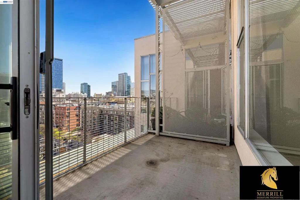 Fantastic Penthouse location, facing sunrise with a view of the Oakland Skyline! Large one bedroom condominium, with unique floor plan allowing privacy for the bedroom area. Super tall ceilings about 11 ft with floor to ceiling windows and access to a large balcony. Washer and Dryer in-unit, parking with storage, building offers a fitness room, courtyard with BBQ and community and package room and dog run! HOA covers more than the basics- water, gas, sewer, trash and high-speed internet along with all the amenities. Views: Downtown