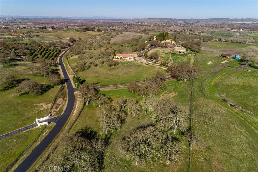 Set within a private gated community in Creston, just minutes from The Loading Chute and Long Branch Saloon, this exceptional 20± acre estate offers sweeping panoramic views of rolling hills, vineyards, and open countryside. Designed with both lifestyle and functionality in mind, the property presents a rare opportunity to own a fully improved multi-residence compound ideal for multi-generational living, guest accommodations, or a private retreat. At the heart of the property is a beautifully refreshed main residence, complemented by a well-appointed guest home and a fully renovated bunkhouse—creating a versatile three-structure compound that offers both privacy and flexibility. The main residence has been thoughtfully upgraded with new flooring, remodeled bathrooms, updated kitchen cabinetry with tile finishes, and a reimagined living space featuring a redesigned fireplace and refined architectural details. Expansive sliding glass doors open seamlessly to outdoor living areas, blending indoor comfort with the surrounding landscape. The guest house offers 3 bedrooms and 2 bathrooms with an open-concept design and expansive views, while the fully remodeled bunkhouse/studio includes its own kitchen, bath, and private patio—ideal for additional guests, workspace, or creative use. Outdoor living is equally compelling, with a pool and spa, resurfaced decking, and multiple gathering areas set among mature oaks and enhanced landscaping. Equestrian amenities include a 5-stall barn with loft, tack room, wash bay, fenced arena, and approximately 17 acres of cross-fenced pastures with water access throughout. Significant infrastructure upgrades—including a new septic system, well pump, booster pumps, updated electrical, and improved water distribution—provide long-term efficiency and ease of ownership. Located just a short drive to Paso Robles, this property captures the essence of Central Coast living with privacy, scale, and breathtaking sunsets in one of Creston’s most desirable settings.