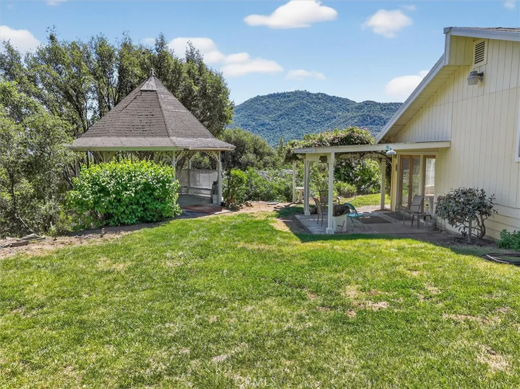 Whether you're seeking rental income, space for returning adult children, or comfortable accommodations for extended family, this versatile property offers exceptional flexibility. The main residence and private apartment are thoughtfully separated by a spacious two-car garage, providing both connection and privacy. The main house boasts an expansive living room with a beautiful wood beamed ceiling, a rock wall and fireplace and ample natural light from 2 large bay windows with seating and french doors out to the back patio.The apartment features a fully equipped kitchen and its own dedicated laundry area—ideal for independent living. Both the main home and apartment boast large walk-in closets complete with built-in shelving. Set on approximately 3.25 acres of mostly usable land, the property invites you to relax and take in the surroundings. Enjoy your morning coffee or evening wine from the expansive gazebo or covered patio, all while soaking in panoramic mountain views. Located in a peaceful and scenic mountain neighborhood, you’ll feel a world away—yet remain conveniently close to everyday essentials. Just five minutes to local grocery stores and restaurants, 15 minutes to Bass Lake, and only 30 minutes to the south gate of Yosemite National Park.