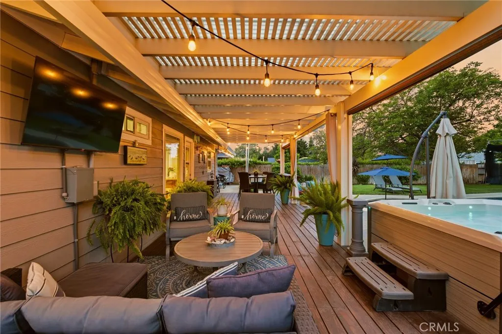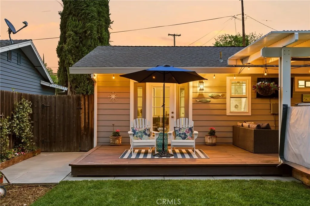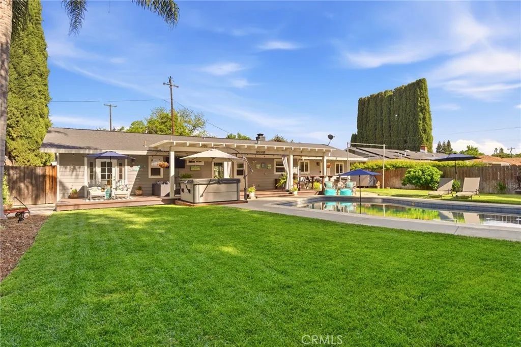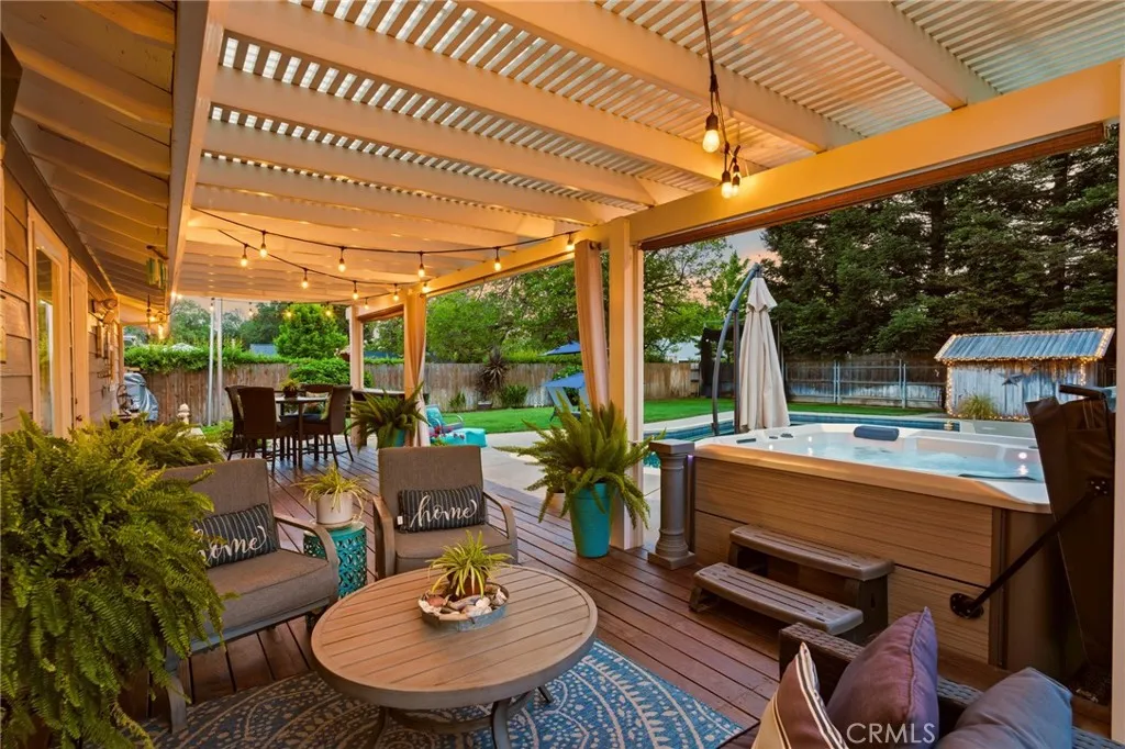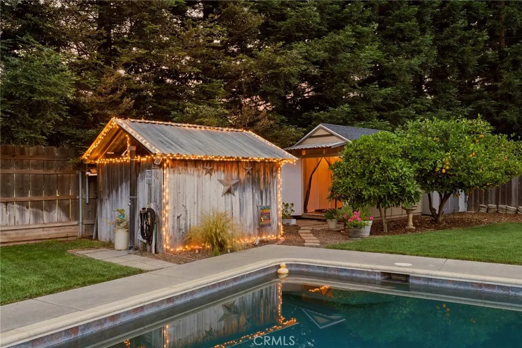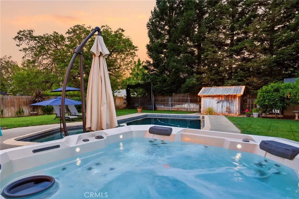 Located in the highly desirable Durham School District, this turnkey home offers charm, space, and functionality on a huge lot with plenty of parking for all your needs. Completely remodeled down to the studs in 2006, it provides peace of mind with thoughtful updates throughout. The inviting interior features 3 spacious bedrooms plus a dedicated office with built-in workspaces, perfect for working from home or added flexibility. Step outside to your own private retreat, where a sparkling in-ground pool takes center stage alongside an above-ground hot tub. The backyard is designed for both relaxation and entertaining, featuring a large wood deck with pergola, mature trees for shade and privacy, and a spacious covered patio, creating the perfect space to unwind or host gatherings year-round. Back inside, you’ll love the custom hickory wood cabinets, sleek quartz countertops, and warm bamboo wood flooring that flow throughout the home. Comfort and efficiency are covered with a newer HVAC system, whole house fan, and smart thermostat, while the kitchen is equipped with a new cookstove and new refrigerator. Additional exterior highlights include new exterior paint, a detached crafting/work shed, pool shed, updated pool equipment, automatic sprinklers, and newer rain gutters. Conveniently located close to schools and other amenities, this home truly combines comfort, functionality, and lifestyle in one exceptional package.