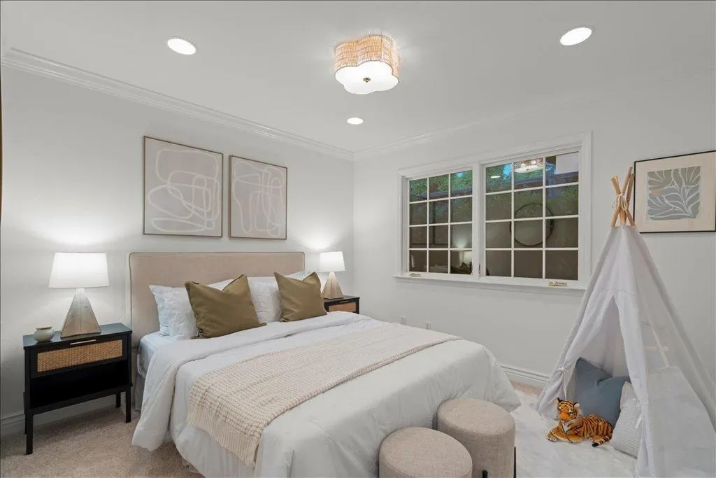 Rare single-level luxury in prime Los Gatos! Beautifully upgraded 4BD/2.5BA home offering 2,577 sq.ft., 502 sq.ft. attached 2-car garage with new epoxy finish, a private 10,000 sq.ft. lot in highly sought-after location near downtown, top schools, and premier shopping. Extensively renovated in 2026: new roof, interior/exterior paint, updated plumbing (~60 ft), new water heater, one new sump pump, new lighting and foundation vent covers. Fresh landscaping with new flowers, mulch, and upgraded irrigation system. Interior features new carpeting and a new French door in the primary suite. Elegant living spaces showcase hardwood floors, crown molding, and a formal living room with vaulted beam ceilings and fireplace. Chef's kitchen with quartz island, farmhouse sink, Wolf 6-burner range, Sub-Zero fridge, Bosch dishwasher, and custom cabinetry. Luxurious primary suite with backyard access, walk-in closet, and spa bath with jetted tub, rainfall shower, and skylight.Private backyard with lush lawn, mature trees, pergola-covered hot tub, and flagstone patio.Features include A/C, Nest thermostat, skylights, water softener & security alarm.Near top schools, Blossom Hill Elementary, stroll to Hillbrook school, Whole Foods, Trader Joes, Lunardis, the Los Gatos creek trail & downtown Los Gatos