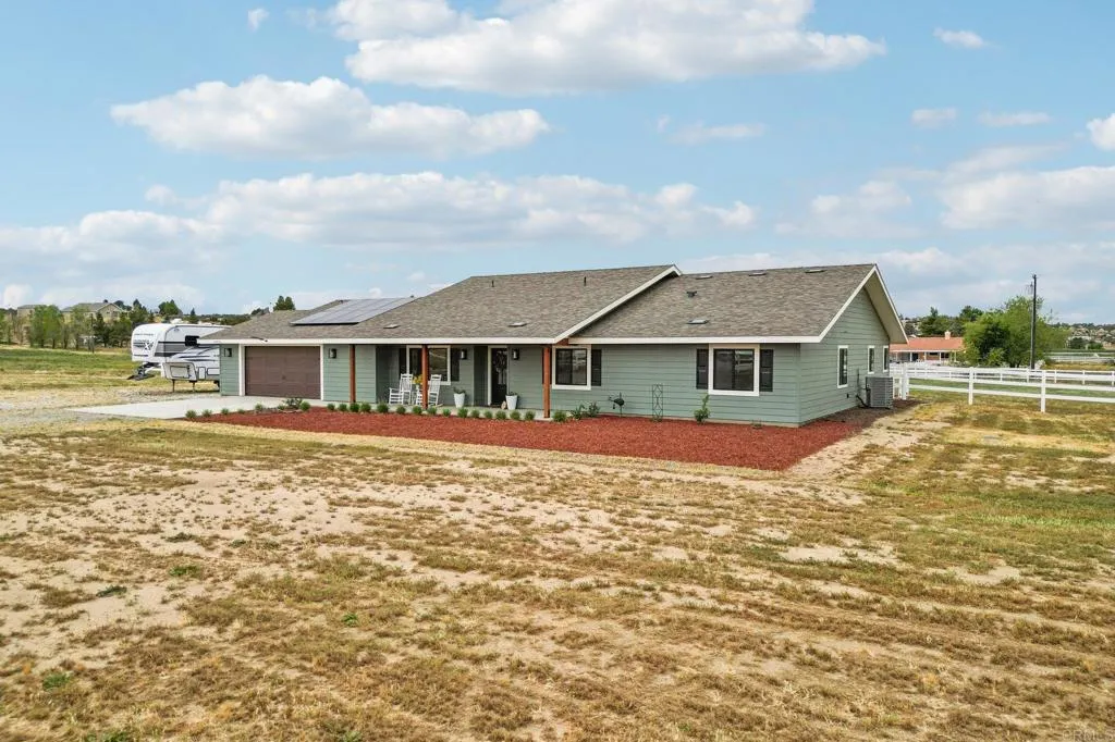 Welcome to a rare opportunity in Lake Riverside Estates, where newer construction meets usable land and true equestrian lifestyle. Built in 2025 and set on 2.57 flat, usable acres, this 4 Bedroom 3-Bath, single-story home with mountain views offers the space, functionality, and setting that are hard to find. Ideally located several lots from the paved main entrance and just a short distance to the community lake, pool, and amenities, the property combines convenience with privacy. Since completion, the property has been further improved with over $50,000 in upgrades, including more than 1,000 linear feet of vinyl fencing, horse corrals, expanded rear patio concrete, upgraded laminate flooring, and a 40-foot storage container with approximately 9-foot interior height, offering substantial additional storage! This thoughtfully designed 4-bedroom, 3-bath home with a versatile bonus room spans approximately 2,299 square feet and features an open-concept layout with quality finishes throughout. The main living area showcases granite countertops, soft-close cabinetry, stainless steel appliances, a walk-in pantry, and custom touches including faux wood beams, crown molding, and barn doors. The primary suite features a spacious custom 6x6 tiled walk-in shower, while the bonus room near the entry provides flexibility for a home office, playroom, or additional living space. A generously sized laundry room with an adjacent half bath functions well as a mudroom for everyday use. The usable acreage provides ample room for horses, RVs, trailers, and future improvements such as a barn or guest house (buyer to verify). Additional features include owned solar, high-efficiency HVAC system, fire sprinkler system, newer Septic and Well Systems, and an oversized approximately 677 square foot finished garage with electric vehicle charging capability. Covered front and rear patios offer comfortable outdoor living with scenic mountain views. This is the home in Lake Riverside Estates you’ve been looking for, if you’re seeking space, recreation, and a true rural lifestyle with modern comfort!