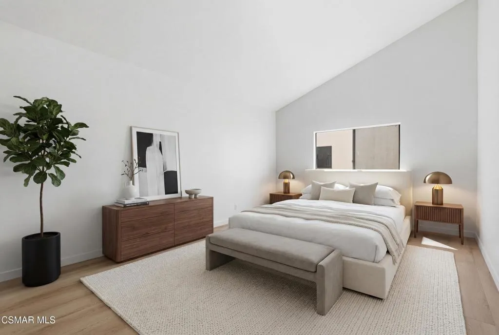 Welcome to this newly renovated, single-level condominium offering 1,390 sq ft of beautifully updated living space. This bright and airy home features an open floor plan with soaring ceilings and abundant natural light, creating a warm and inviting atmosphere.The spacious living area is highlighted by a cozy fireplace and seamlessly connects to the dining and kitchen areas--perfect for both relaxing and entertaining. The kitchen features granite countertops and comes fully equipped with refrigerator, dishwasher, stove, and microwave.This home offers 2 spacious bedrooms and 2.5 bathrooms, including a large primary suite with a walk-in closet and an en-suite bathroom featuring dual sinks. Additional upgrades include top-grade laminate flooring throughout, new paint, central A/C and heating, and in-unit laundry for everyday convenience.Residents enjoy resort-style amenities including a pool and spa, along with two side-by-side parking spaces conveniently located next to the elevator.This move-in ready home combines modern upgrades, comfort, and convenience--making it a must-see!