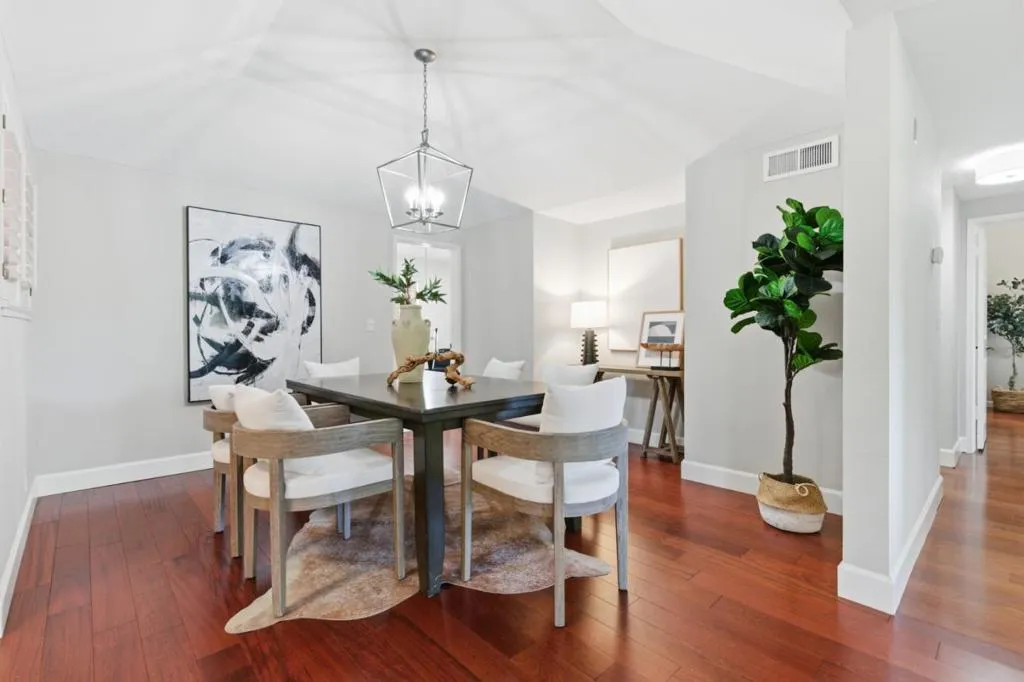 Ground-floor living in a gated community, complete w/ 2 dedicated parking spaces including an EV charger & a spacious private storage room, this beautifully updated home is further enhanced by top-rated Las Lomitas schools & a prime Sharon Heights location overlooking the golf course. Tucked away w/ direct access and enhanced privacy, the residence opens to a bright, refined interior with fresh paint and rich hardwood flooring throughout. The remodeled kitchen features marble countertops, modern appliances, and a built-in oven, seamlessly connecting to a dedicated dining area designed for both daily living and effortless entertaining. The grand living room is anchored by a cozy fireplace and extends to a large private patio, creating a seamless indoor-outdoor flow with peaceful golf course and greenery views. Two spacious bedrooms offer comfortable retreats, including a primary suite w/ direct patio access. Two full bathrooms are thoughtfully designed for both function & style. Additional highlights include central air conditioning, in-unit laundry, & well-appointed community amenities such as a heated pool & clubhouse. All just moments from Sharon Park, Sharon Heights Shopping Center, Stanford Shopping Center, and Stanford Medical Center, w/ easy access to major commute routes.