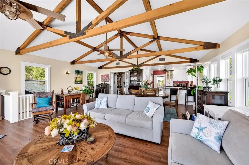 Modern coastal charm: A reimagined craftsman retreat Discover the perfect harmony of historic character and contemporary luxury in this stunning four- bedroom, three- bath Craftsman cottage. Meticulously remodeled and expanded, this home preserves its original soul while offering the open-concept lifestyle of a modern residence. The expansive great room serves as the centerpiece of the house, where the living area flows effortlessly into the gourmet kitchen. Vaulted ceilings soar overhead, anchored by magnificent hand- hewn trusses that add a touch of rustic architectural artistry. This luminous space is designed for both grand entertaining and quiet, sun-drenched afternoons. Through expanded floor to ceiling glass doors, the stunning, ocean view deck extends the living space with a comfortable indoor/ outdoor flow. Enjoy sweeping views of the Pacific Ocean and Catalina Island, culminating each evening in vibrant, unobstructed sunsets that paint the sky from the comfort of your living room. The primary suite serves as a private escape where luxury meets the tranquility of the coast. French doors open onto a private ocean-view deck, allowing the sound of the waves and the cool Pacific breeze to become a permanent fixture of your morning routine. Beyond the interior lies a private, fully enclosed backyard designed for the ultimate "al fresco" lifestyle. This secluded sanctuary offers a blend of lush landscaping and functional luxury, creating an ideal environment for both intimate family dinners and large-scale year round soirees. The outdoor space features a premium grill, ample stone countertop prep space and barstools for gathering. Enjoy the outdoor fire-pit to enhance the cozy, yet open aesthetic. Located a few blocks to locals' favorite and Laguna's most sought after beach, Victoria Beach. Take the Laguna Beach trolley into town and back to your stylish retreat.