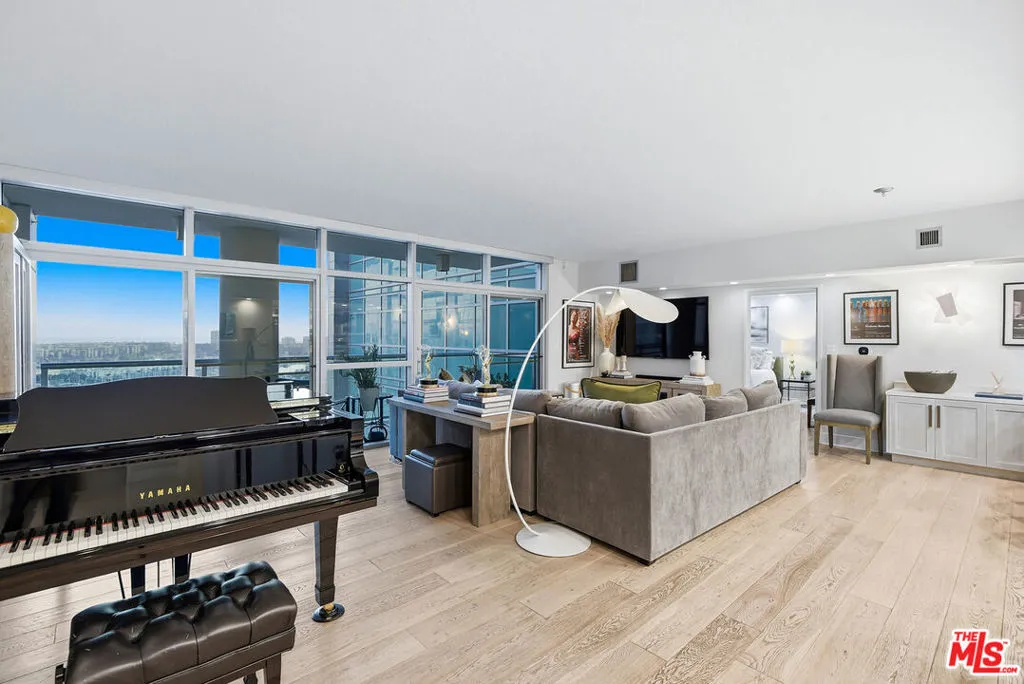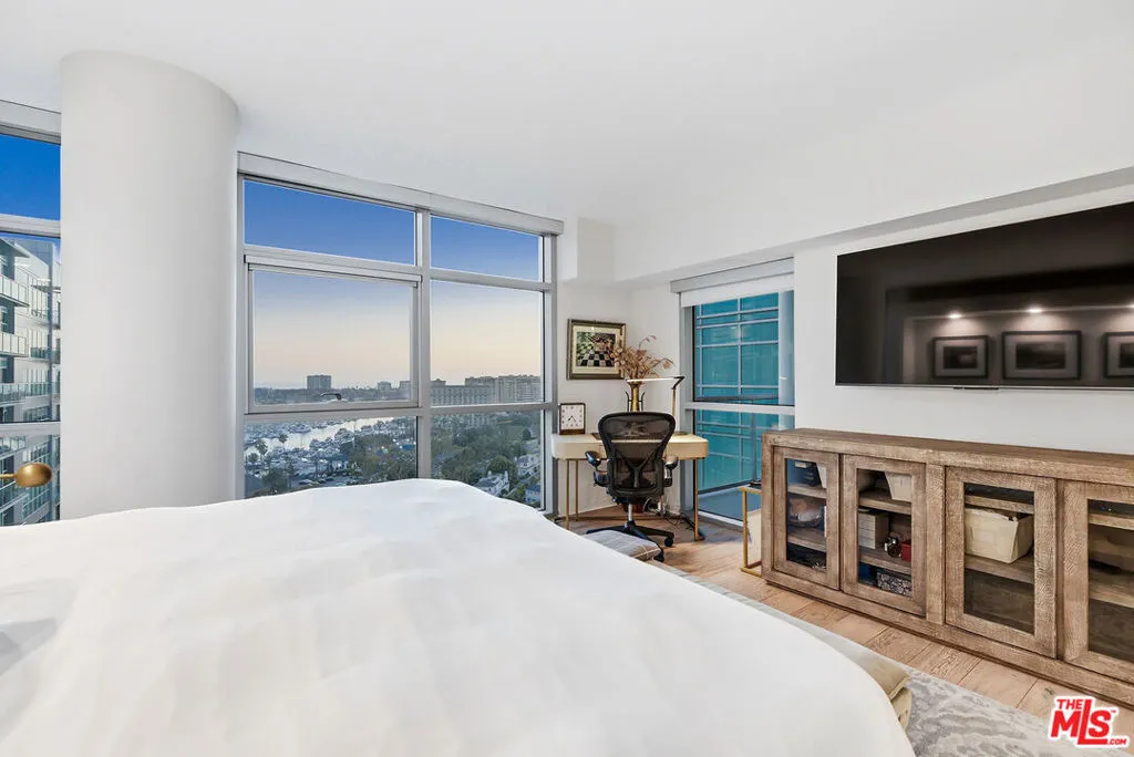 Spectacular Marina and Ocean views define this 17th-floor residence at the prestigious Azzurra. Showcasing one of the largest and most sought-after two-bedroom floor plans, this beautifully renovated home spans nearly 1,800 square feet and is perfectly oriented to the West -- capturing breathtaking views, abundant natural light throughout the day, and a remarkable sunsets year-round. Thoughtfully designed for both comfort and entertaining, the open-concept layout features high ceilings, gorgeous hardwood flooring, and expansive living and dining areas that flow seamlessly to an oversized private balcony -- an ideal setting to take in the panoramic coastal views. The chef's kitchen is elegantly appointed with quartz countertops, custom cabinetry, stainless steel appliances, and a generous breakfast bar.Both bedrooms are generously scaled and positioned on opposite ends of the residence, offering ideal separation and privacy. The primary suite enjoys sweeping Marina and Ocean views and is complemented by a spa-inspired en-suite bath with dual vanities, deep soaking tub, separate glass-enclosed shower and more than ample closet space. Additional highlights include custom built-ins throughout the unit, a full-size laundry room with added storage, dual-zone HVAC's, and two-car parking -- delivering both functionality and everyday ease. HOA dues include cable, internet, water, trash, and earthquake insurance, along with access to an unparalleled collection of resort-style amenities: 24-hour valet for guests, full-service front desk and security, rooftop spa and sky lounge, heated pool and spa with private cabanas, media lounge, curated art collection, and expansive indoor/outdoor fitness centers with dedicated yoga and Pilates studio. Ideally located just minutes from world-famous beaches, renowned dining and shopping, scenic bike paths, theaters, dog parks, LAX and much more! This is elevated coastal living at its finest.