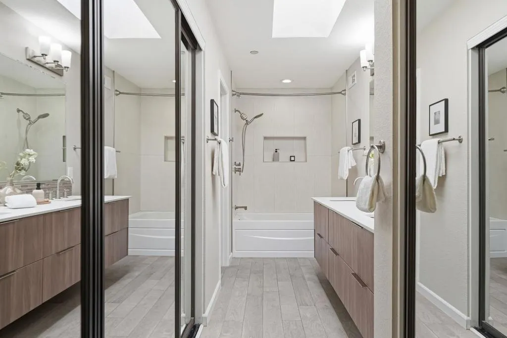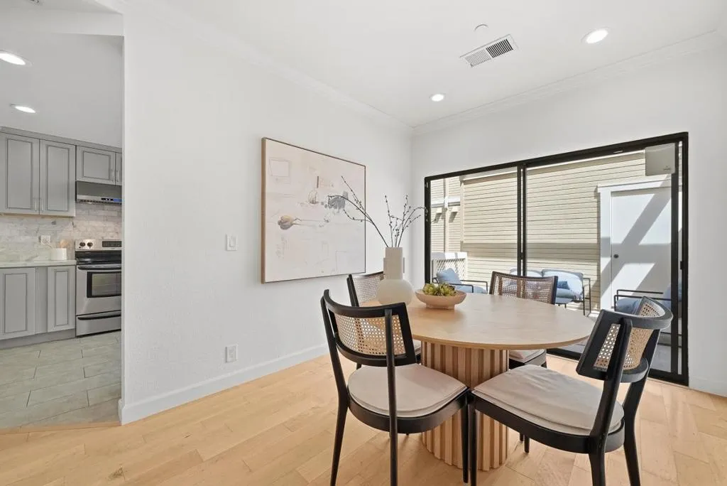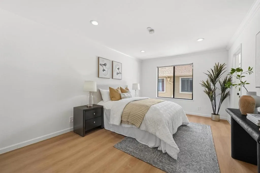 Beautifully updated and spacious townhome on the border of Mountain View and Sunnyvale, offering modern comfort, spacious rooms, and unbeatable convenience. Located in a highly desirable Sunnyvale neighborhood with access to top-rated Homestead High School, this bright home features fresh 2026 interior paint, high ceilings, recessed lighting, central A/C and heating, and abundant natural light. Spacious living room with built-in shelving, LED recess lighting, hardwood flooring and elegant fireplace. Upgraded gourmet kitchen with modern cabinetry, luxury quartz countertops, stainless steel appliances, and designer fixtures opens to a large private balcony from the dining room. Oversized primary suite offers space for a sitting area or desk, brand new luxury waterproof SPC flooring, dual closets, and a luxurious bath. Generous guest suite includes a newly renovated 2026 bathroom. Versatile bonus room ideal as a third bedroom, office, or gym. Attached 2-car garage and in-unit laundry. HOA includes pool, spa, water, garbage, roof etc. Prime commuter location near Hwy 237, 85, 101, El Camino, Sunnyvale Caltrain, VTA, Cannery Park, downtown Mountain View, downtown Sunnyvale, shopping, dining, and major tech campuses including Google, Apple, Meta, and Nvidia. Welcome to your dream home