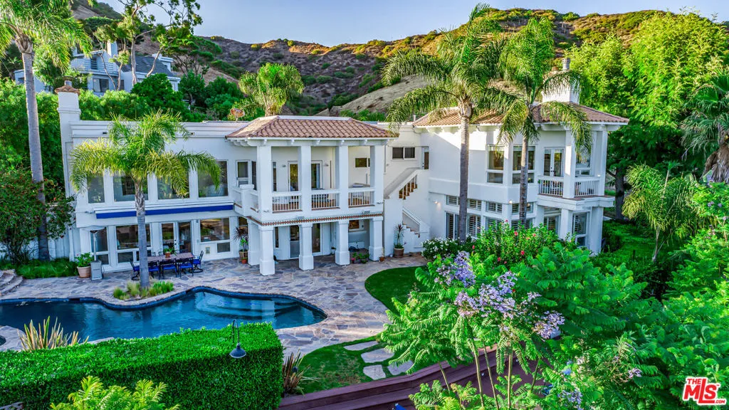 This 6 bedroom pool home with expansive ocean views and within walking distance to the beach, offers Malibu living at its finest. Step into your contemporary Spanish Malibu oasis through a striking, high-ceiling foyer. From here, pass the stylish study area with direct patio access to the cozy main living area with a fireplace and easy access to both a private patio and the pool area. The kitchen is a chef's dream, complete with a central island, a spacious walk-in pantry, and a sunlit breakfast nook that opens directly to the pool area. An adjacent bar connects to the elegant dining room, with double-height ceilings and seamless flow to the pool and BBQ area perfect for both casual gatherings and formal occasions. The main level also hosts a media room that offers a dedicated space for entertainment, a powder room, a fully equipped laundry room, and a guest bedroom with an en-suite bathroom (currently set up as a gym). The upper level is a private retreat featuring a luxurious primary suite with expansive ocean views, a walk-in closet, and a spa-like bathroom with dual enclosed water closets, an oversized shower, a soaking tub, and an electric sauna. A private staircase leads from the primary suite directly to the pool area. The second bedroom boasts a full en-suite bathroom, a private balcony with ocean and pool views, and a walk-in closet. Two additional bedrooms share a central bathroom and a balcony with ocean views. A versatile loft-style bonus room overlooking the dining room can be set up as a library, a game room, a study, an atelier or whatever you imagine of this space. Outside, immerse yourself in Malibu's natural beauty with a pool, hot tub, an oversized deck, BBQ area, and ample space for outdoor dining and lounging. This home has everything you need to fully enjoy the Malibu lifestyle, blending spacious elegance with a layout designed for relaxation and entertaining. Conveniently located in Central Malibu, minutes away from Latigo Beach one of the best surfing spots in Malibu, Escondido Falls, Paradise Cove, Point Dume, and many other well-known Malibu nature spots. A short drive to both Malibu and Trancas Country Mart for shopping, groceries, and activities. Available for lease at $39,500.00 PCM