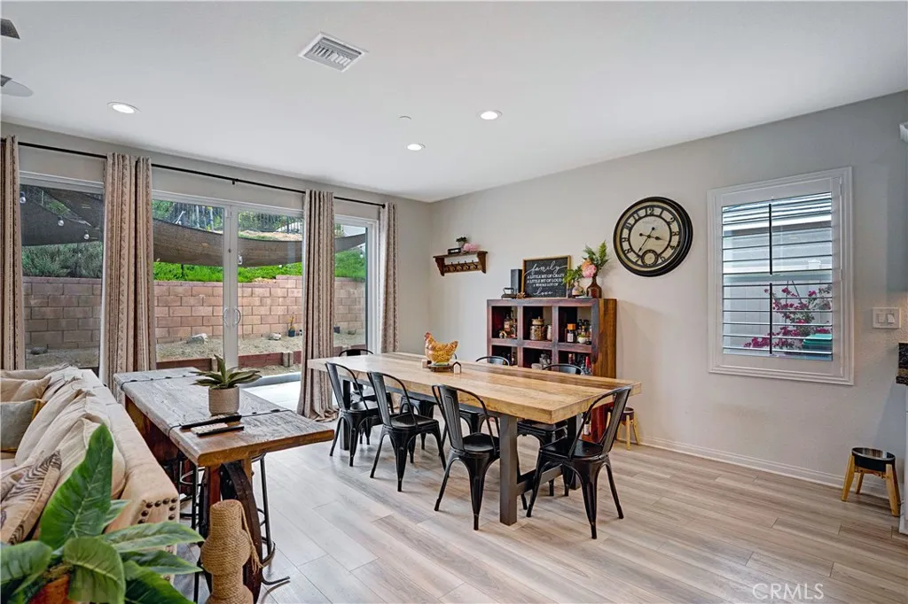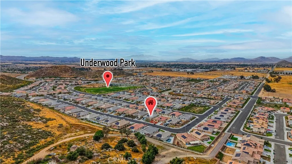 Single Story Pool Home in Menifee located in an all electric community of Shadow Mountain with low HOA. This home offers 3 bedrooms 2 bathrooms and a centrally located den/office/possible 4th bedroom. The upgraded kitchen showcases a large island, convection oven, walk-in pantry, shaker cabinets with black hardware opening seamlessly to the main living area with surround sound and dining area to double door sliders to backyard. Interior highlights include luxury vinyl plank flooring throughout, plantation shutters, and an upgraded allergy-conscious ventilation system. The master bedroom has tons of natural light and large master bathroom with black trim walk-in shower and walk-in closet. All guest bedrooms feature walk-in closets. Enter the landscaped backyard with concrete patio, side yard storage and a full separate side yard with a pebble tec dark bottom pool, baja shelf with two umbrella slots. The property also offers possible RV parking on the side if parked behind the gate. The property has solar and close to tons of parks, schools and shopping!