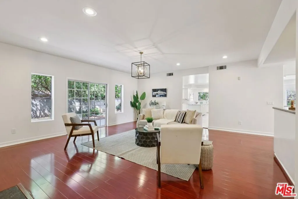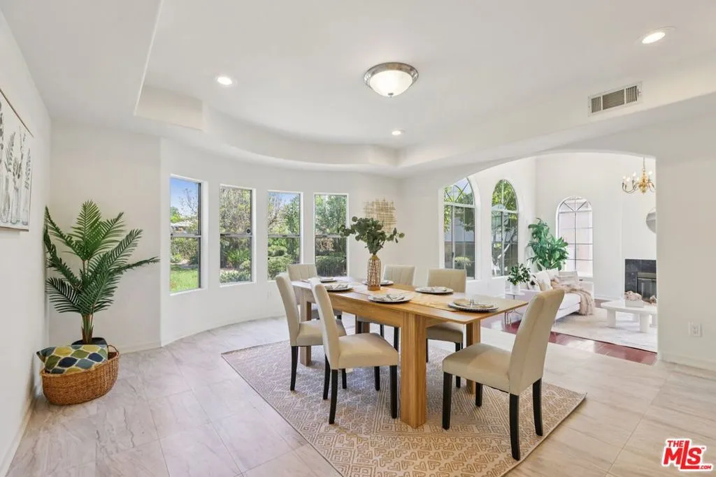 Set on a quiet, private cul-de-sac in one of Northridge's most sought-after neighborhoods, this impressive Mediterranean-style estate delivers the scale, elegance, and outdoor space that are nearly impossible to find at this price point. Soaring two-story ceilings, a graceful curved staircase, and an arched leaded-glass front door set a confident tone from the moment you arrive, while formal living and dining rooms with high ceilings, a classic chandelier, and arched picture windows create spaces that work equally well for entertaining or everyday life. The oversized family room features a coffered ceiling and flows naturally into a beautifully updated kitchen with white cabinetry, quartz countertops and backsplash, a large island with sink, gas cooktop, and stainless hood functional, clean, and genuinely beautiful, with a breakfast nook and sliding glass doors that connect seamlessly to the backyard. Upstairs, the primary suite is spacious and private with treetop views, complemented by a spa-caliber bathroom featuring a soaking tub, glass shower, dual vanities, and a walk-in closet. Additional bedrooms are well-proportioned and bright throughout. The backyard is the real story one of the largest flat, usable lots in the area and a genuine gardener's dream, with room for fruit trees, raised beds, a future pool, and ADU potential subject to city approval. Minutes to O'Melveny Park, Limekiln Canyon, and Aliso Canyon trails, and close to Northridge Fashion Center and great neighborhood dining. Pre-sale inspections and disclosures are complete and available making for a clean, confident purchase process from day one.