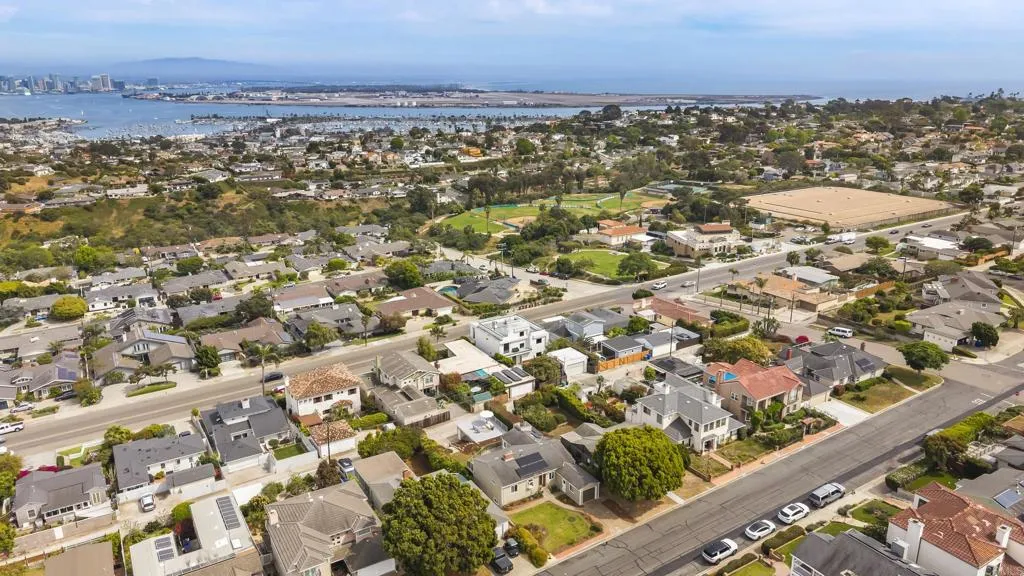 Fabulous opportunity in Point Loma with sweeping views of the bay and downtown, and walking distance to Sunset Cliffs. Start your mornings with coffee on the deck as the sun rises over the city and enjoy front-row seats for spectacular Fourth of July fireworks. Designed for effortless indoor-outdoor living, this mid-century home features two spacious decks plus a crow’s nest viewing area that takes the views to the next level. Relax in the cozy living room full of character with fireplace, wood ceiling and stunning night and day views. Embrace the Point Loma lifestyle—walking distance to groceries, coffee, Sunset Cliffs, top-rated Silver Gate Elementary school, and Point Loma Park, home to summer concerts and PL Little League. Lovingly owned by the same family for over 30 years, the home has been freshly painted and thoughtfully staged. Owned solar panels; newer AC-ready furnace, tankless water heater and retractable awning. A flexible floor plan offers the convenience of single-level living on the main floor, with a large family room and two additional bedrooms below—ideal for guests, multigenerational living, or extra space to spread out. With two garages plus RV parking area, there’s ample space for all your vehicles and toys. The upper garage offers an exciting opportunity for conversion to additional living space. With great bones and endless potential, this is your chance to create the Point Loma home of your dreams. Welcome home.
