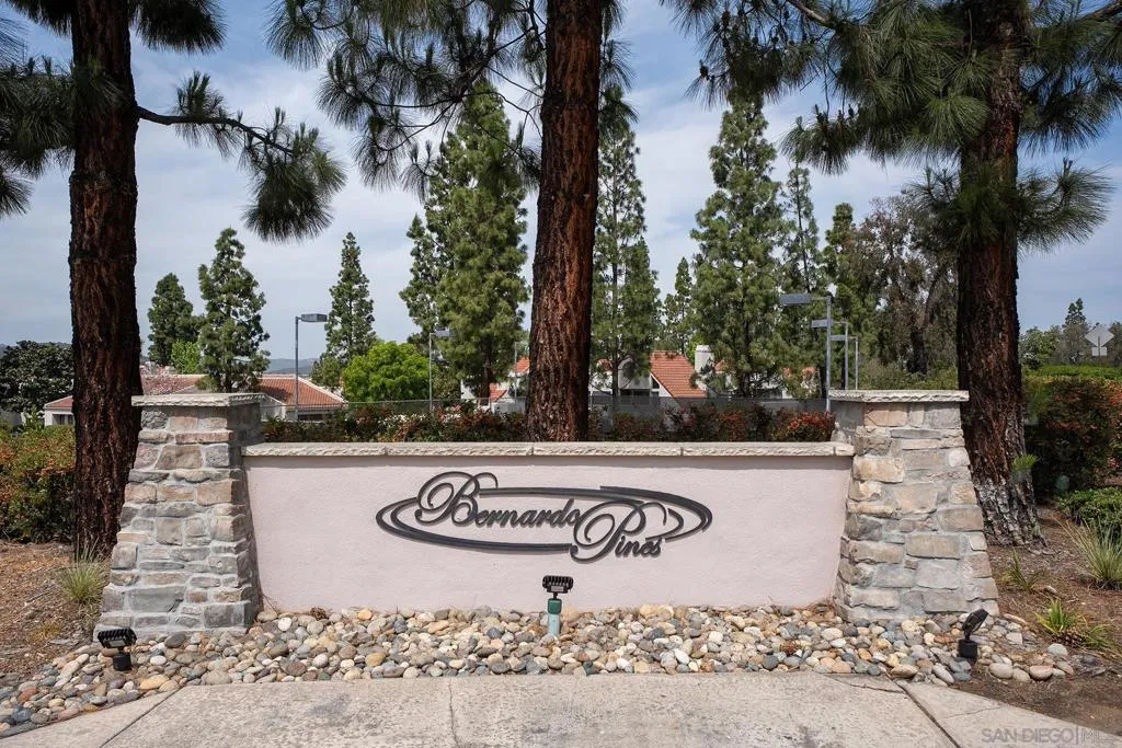 Welcome to Bernardo Pines in Rancho Bernardo! This 1-bedroom, 1-bath condo offers 817 sq ft of comfortable living with vaulted ceilings that create a bright, open feel. The home has been recently updated with fresh paint and new carpet. The spacious bedroom includes a walk-in closet, while the living room features a fireplace and opens to a generously sized private patio making ideal for relaxing or entertaining. Additional highlights include in-unit washer and dryer, central heating and air and two assigned parking spaces (which includes 1 covered space). Located on the second floor for added privacy. The community offers great amenities including a pool and tennis courts, all in a convenient Rancho Bernardo location close to shopping, dining, and everyday essentials. Complex is FHA and VA approved!
