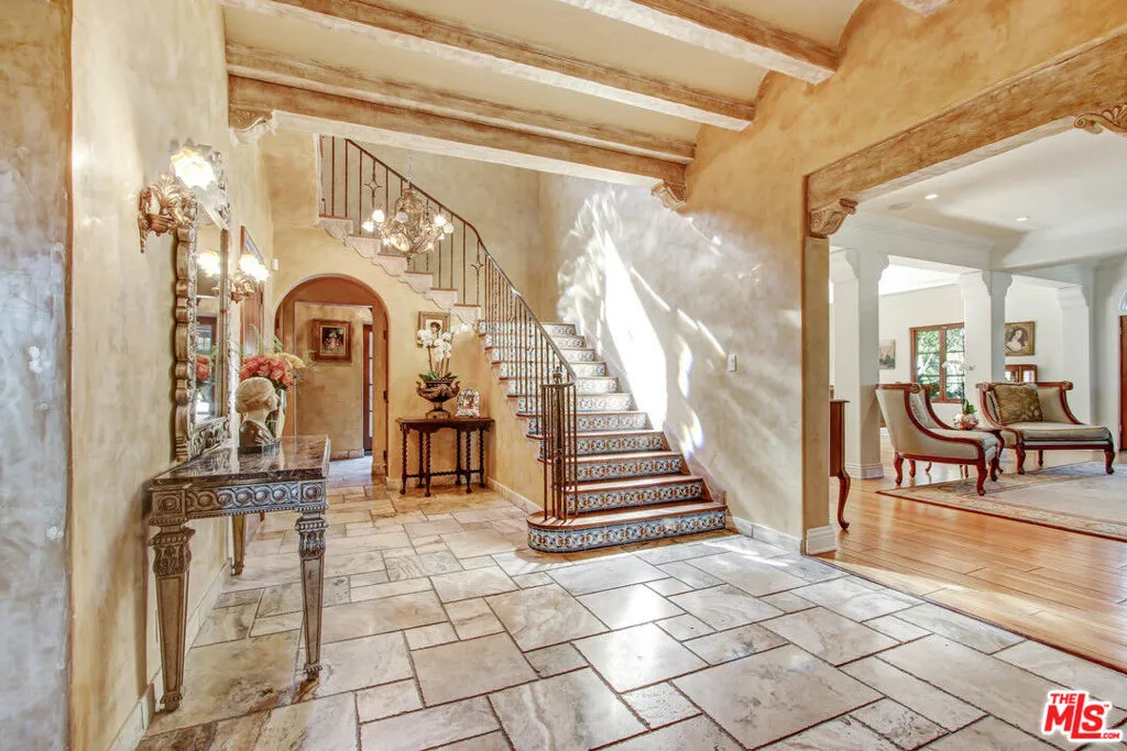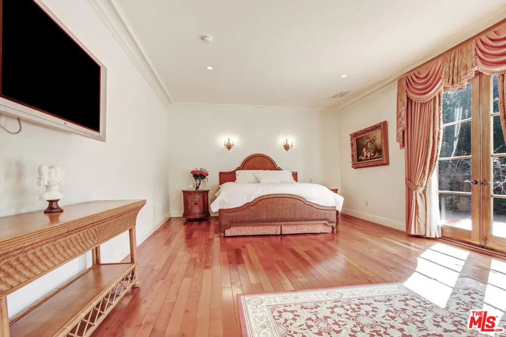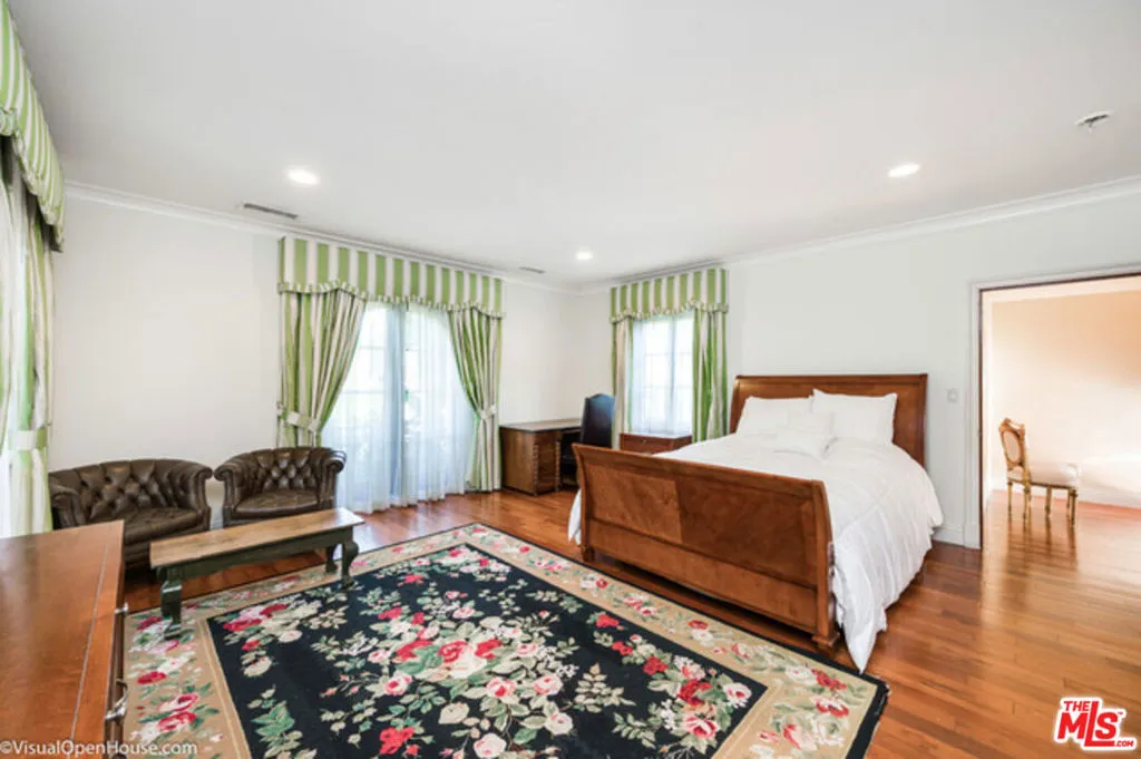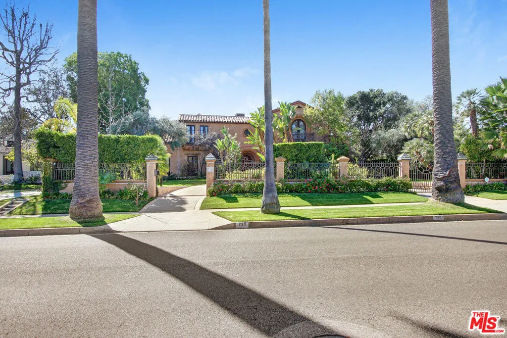 Available A Private Oasis, reimagined in 2007 . This gated, Sun filled Beverly Hills compound is gracefully sited on the corner lot (almost half an acre), hidden behind elegant wrought -iron estate fencing. Masterfully designed landscaping throughout the property feature mature flowering trees and hedges with evergreen foliage that create a lush and exotic privacy. Formerly Shirley Temple's childhood home, this sophisticated villa is comprised of 2 houses. The main house (apx 8,900 sqft) offers 5 bed suites and 8.5 baths. Seamlessly flowing floor plan combines indoor and outdoor spaces, making it the perfect environment for entertaining and lounging. The basement features a bowling alley and is perfect space for games and Billiard. Privately tucked away guest-house built 2014, is completely secluded with its own entrance, driveway and parking for 4. It boasts apx 1,500 sqft with 3 Bedrooms & 2.5 Bath, full kitchen and a living room. Unforgettable home that provides luxury, tranquility and complete privacy.