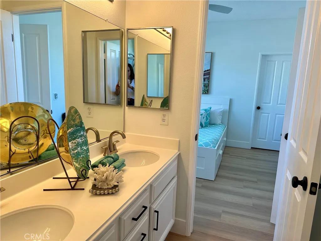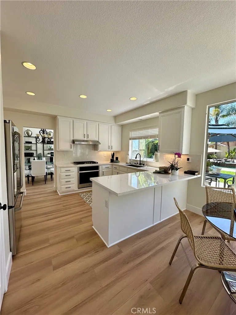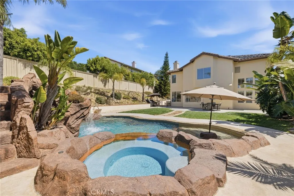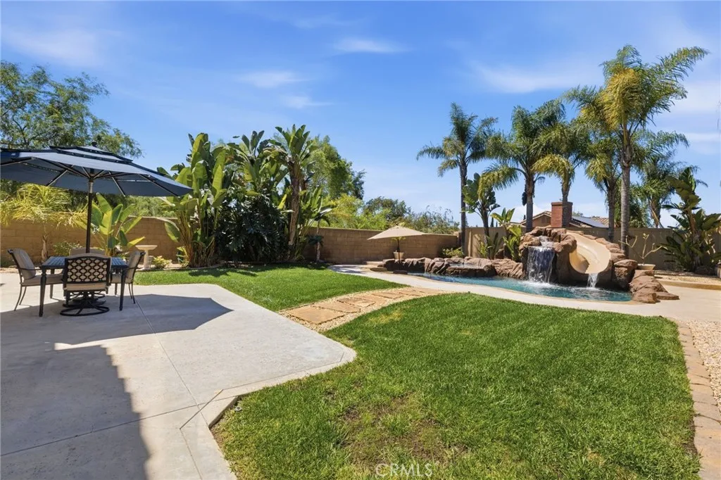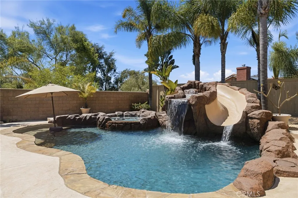 RARE OPPORTUNITY IN ALISO VIEJO! Set on an expansive 10,800 sq. ft. lot, this beautifully upgraded 4 bedroom, 3 bath home offers a highly sought after floor plan with a full bedroom and bath on the main level. The resort style backyard is an entertainer's dream featuring a salt water pool, spa with slide, outdoor shower and generous grassy area for gatherings. Inside, enjoy new waterproof wood laminate flooring, a refreshed kitchen with quartz countertops and white cabinetry, and a light, bright interior with fresh paint throughout. Additional highlights include a full PEX repipe, paid solar for the pool, gated courtyard entry with slate accents, whole house water softener, reverse osmosis water filtration and HVAC with UV light. Ideally located near award winning schools, parks, hiking and biking trails, shopping, dining and easy freeway access plus an oversized driveway with ample parking.