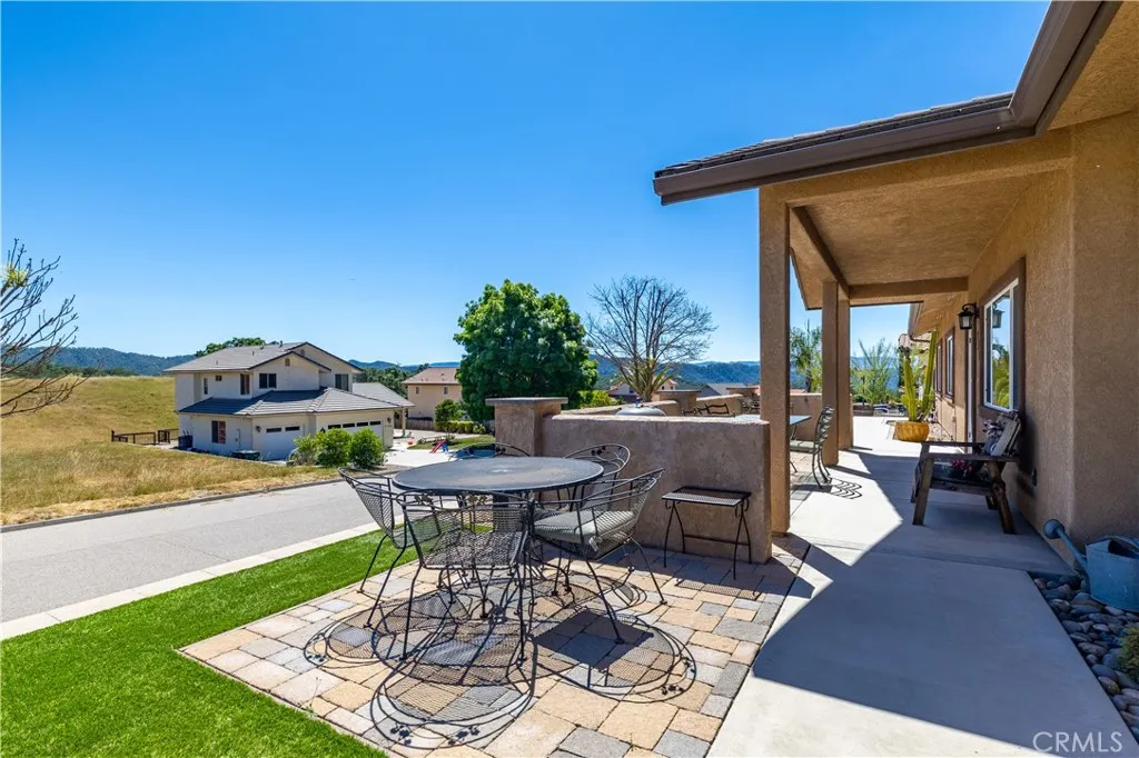 LOCATION! Privacy, space, and the ultimate lake lifestyle. Welcome to Lakeside village and this beautifully maintained single-level 3-bedroom, 2-bath home, ideally situated on a quiet cul-de-sac in the highly desirable Heritage Ranch community. With open space above the home and a peaceful greenbelt behind, this property offers a rare combination of privacy and scenic surroundings. Upon entering the home, the open-concept floor plan allows for each room to flow together however rustic charm and details highlights the home where vaulted ceilings create a bright, and airy feel. The living room is anchored by a stunning rock fireplace with a floating mantle, adding warmth and character—perfect for cozy evenings. Nine-foot ceilings extend throughout the rest of the home, enhancing the sense of space. The kitchen is designed for both function and style, featuring granite countertops, stainless steel appliances, ample cabinetry, & a versatile movable island. The kitchen flows seamlessly into the dining area. Just off the kitchen, you’ll find a convenient indoor laundry room complete with a sink and additional storage. Down the hall, tile flooring transitions into cozy carpeted bedrooms. The nice sized primary bedroom tastefully designed with a walk-in closet accented by a custom sliding barn door ensuite bathroom is its own mini oasis equipped with soaking tub, private stand alone shower, & water closet, Second and third bedroom are comfortably sized with adequate closet space, ideal for guests, family, or a home office. Moving towards the outside of the property pride of ownership truly shines. Thoughtfully designed rock landscaping pairs beautifully with clean concrete hardscaping adding longevity and ease of use with a charming wraparound porch. You will find a pathway leading to a newly developed upper deck & lounge area. The expansive driveway and oversized, extra-deep 3-car garage Additional features include a durable concrete tile roof, owned solar, water filter system and fire sprinkler system for added peace of mind. This property is conveniently located walking distance to Oak Hill Market, Cappy Culver (K- 8), Restaurants, Gas, Gym, Hairitage Salon and a mile from the launch ramp. Heritage Ranch has community events, with access to a private marina and boat launch, two pools, sport and pickleball courts, scenic trails, parks, playgrounds, an equestrian center, & as a 24-hour gated attendant. It's country living with all the conveniences of the city.