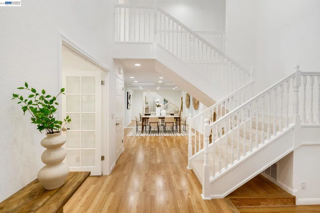 Welcome to your own private retreat. This beautifully updated home blends comfort, style, and functionality—starting with a low-maintenance artificial turf front yard and continuing throughout. Step inside to a bright, open floor plan with vaulted ceilings and abundant natural light. The home features fresh interior paint, brand-new luxury carpet, and an updated A/C system for year-round comfort. The refreshed kitchen includes stainless steel appliances and opens seamlessly to the main living areas—ideal for everyday living and entertaining. Hardwood flooring downstairs adds warmth and contrast. Both bathrooms have been updated with spa-like multi-jet shower systems, creating a true resort-style experience. Secondary bedrooms feature European-style shutters for full light control, and one offers a built-in wall bed—perfect for a home office or flexible space. The backyard is built for entertaining with a spacious patio and built-in barbecue area. Move-in ready and designed to impress.