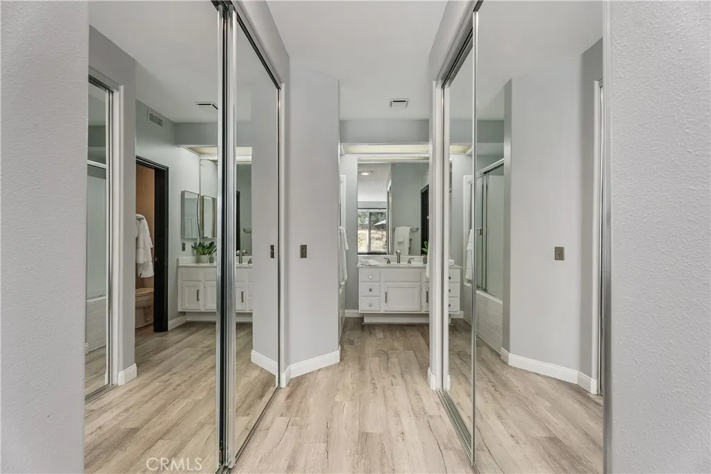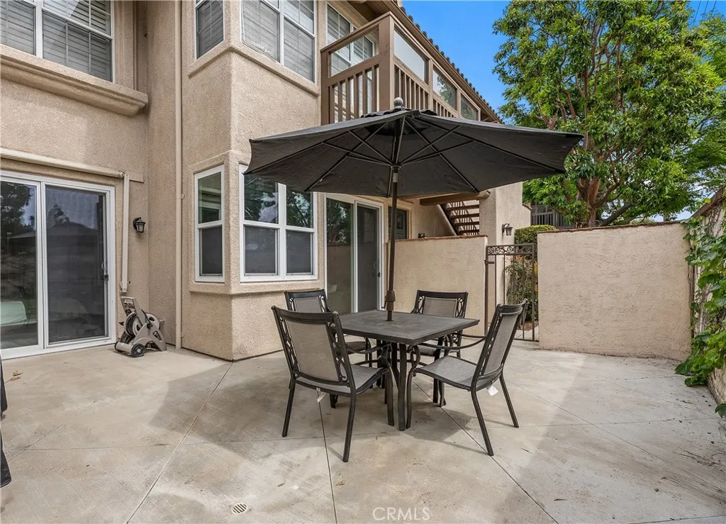 This handsome single-level condo offers the perfect “2-2-2”: 2 Bedrooms, 2 Bathrooms and a 2-Car Attached Garage. Enter through a private walkway into an updated, open-concept home featuring gray-tone wood-style flooring throughout, dual paned windows & sliders, custom shutters, a cozy fireplace and newer HVAC system. The kitchen showcases sleek black granite countertops with breakfast bar, bright white cabinetry, stainless steel appliances, and an indoor laundry room with ample storage. The oversized primary suite includes dual closets and an en-suite bath with a refreshed vanity and tub/shower combo plus a privacy door to the toilet. The secondary bedroom is located on the opposite side of the home for maximum privacy and is adjacent to a refreshed full bathroom. Enjoy a generously sized private patio off the living room—perfect for BBQs and entertaining. Ideally situated in the desirable Arcada tract near parks, community pool, Irvine & Tustin Marketplace, dining, theaters, and easy freeway access.