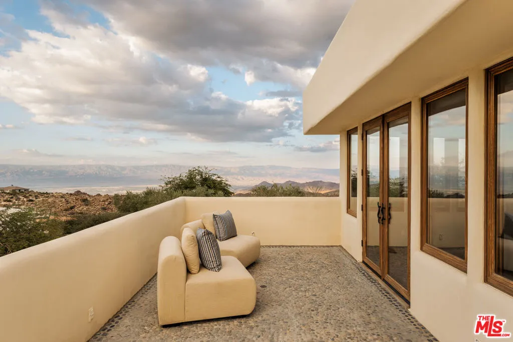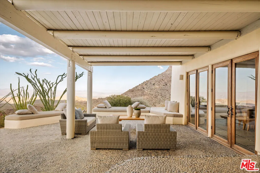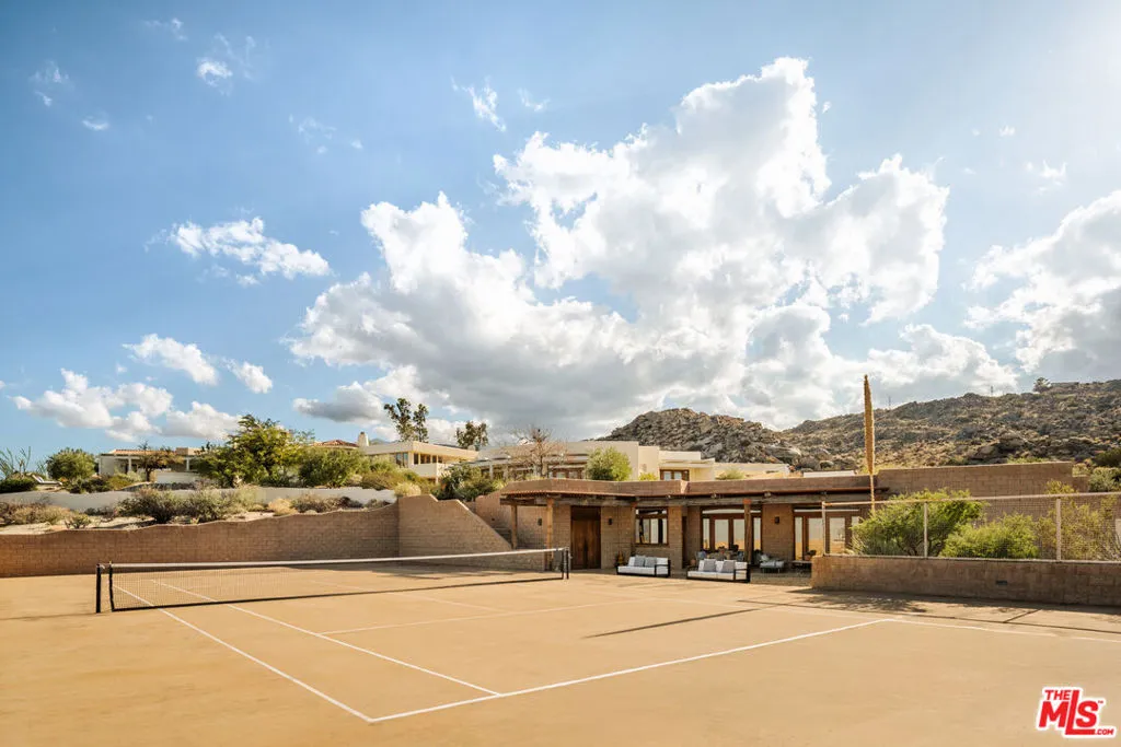 Villa Palm Seco is a desert sanctuary spanning over 18 acres and offering unparalleled privacy, peace, and panoramic views. Set within the ultra-private Royal Carrizo enclave, this gated estate is designed for inspired living and deep restoration. Its architecture draws from a Grecian indoor-outdoor design, dissolving the boundaries between nature and space. Three residences coexist with the land, embracing the desert's golden light and quiet grace. From sunrise to sunset, each bedroom is thoughtfully positioned to frame breathtaking views across the Coachella Valley. An idyllic setting for gatherings of all types & sizes, the property features multiple terraces, open-air dining areas, a cozy movie theater, and a resort-style pool and spa. The tennis court, seemingly floating above the desert floor, carries a legacy of professional play and global admiration. Whether you're seeking a restorative off-grid escape, a creative retreat, a family compound, or an investment/development opportunity, Villa Palm Seco delivers a lifestyle of unmatched versatility and world-class desert living close to everything, yet it feels a world away.