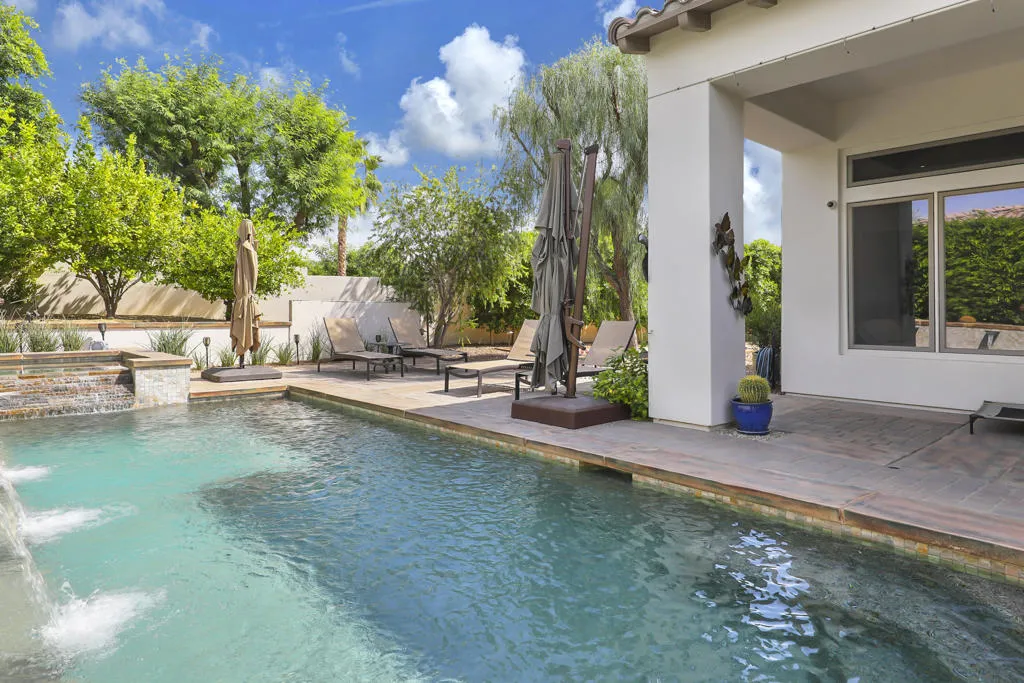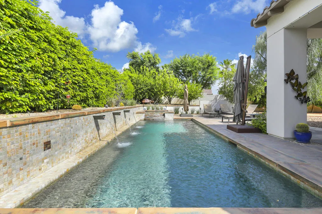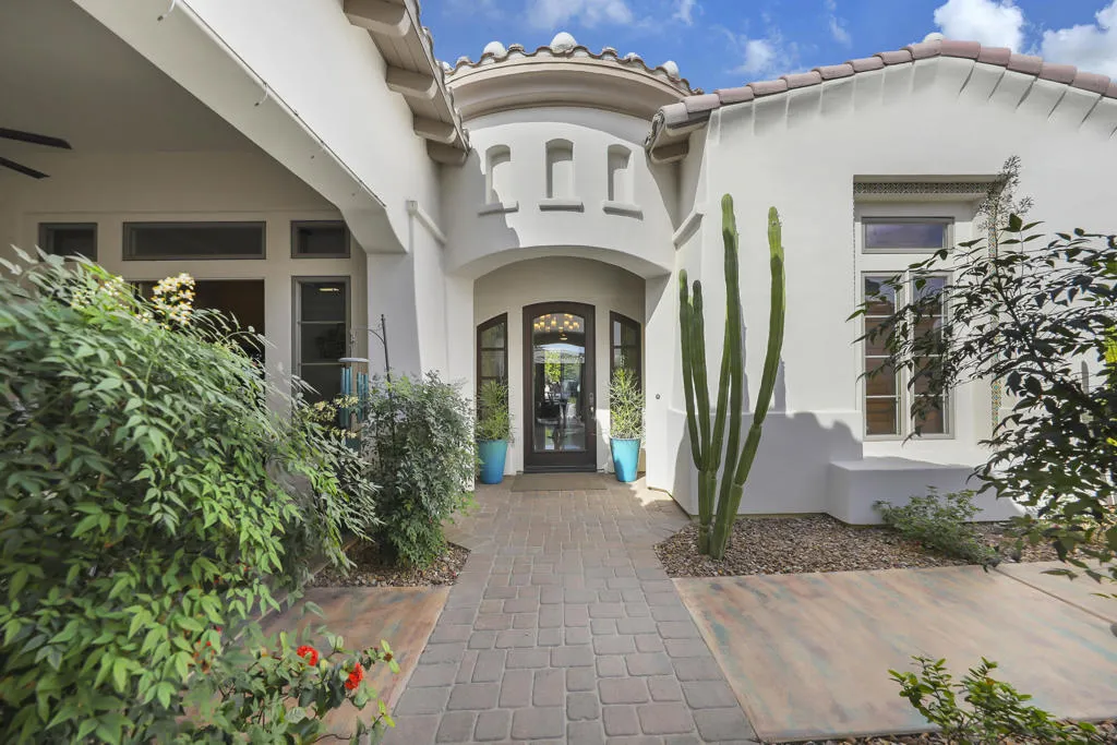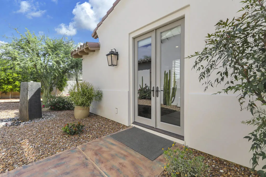 A rare opportunity to own a terrific refreshed former Model Home. This luxury 4 bedroom including Casita home, at Griffin Ranch, with a completely remodeled kitchen, with new quartz counters, backsplash, waterfall Kitchen Island and refreshed cabinets is one of the most popular floor plans. The upgrades start at the very private gated entrance and covered front courtyard with all new misting system & fireplace. This outdoor space sets the tone for how all the living spaces have been redesigned. Twin office /den spaces allow couples each private space for work, or play. Once inside you'll be impressed with how current this former model lives with the open great room, large cooks' kitchen & comfortable Morning room. If you are looking for privacy, this is it! The mature landscaping provides you with an amazing backyard, pool, spa, bocce ball court, room for your family & friends or head over to clubhouse and enjoy all the amenities that Griffin Ranch has to offer, including Pickleball, Tennis, Jr Olympic pool & spa. The parties at the clubhouse are second to none, the pickleball group has grown to well over 100 players, this is simply a fun place to live & play.