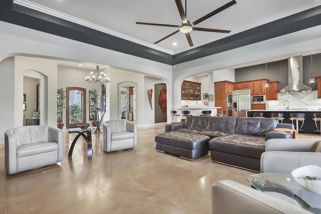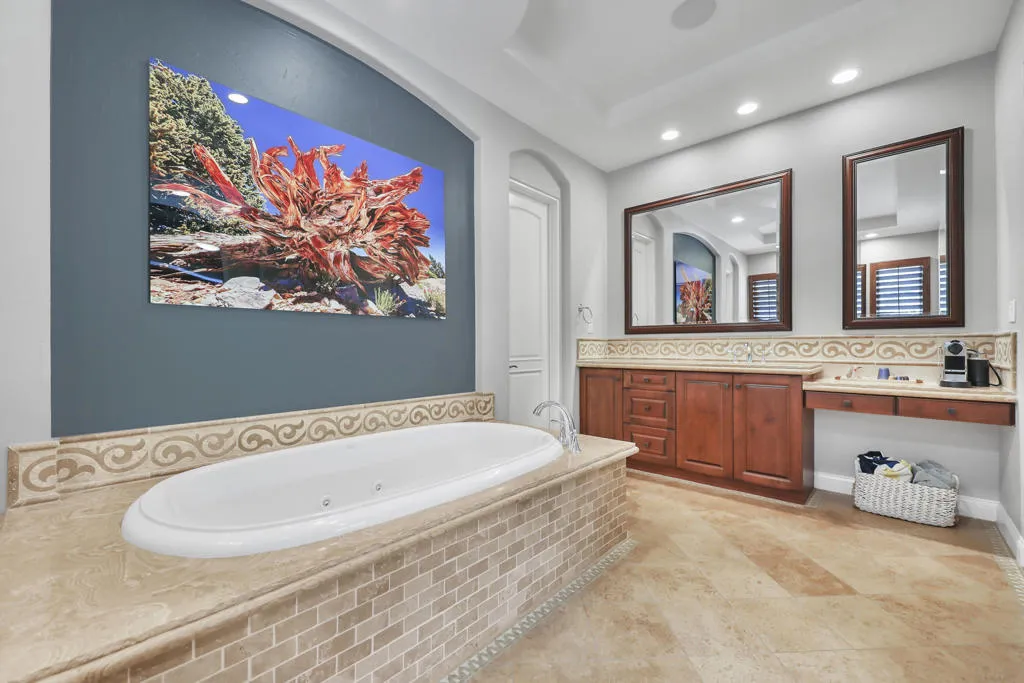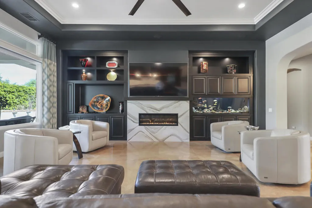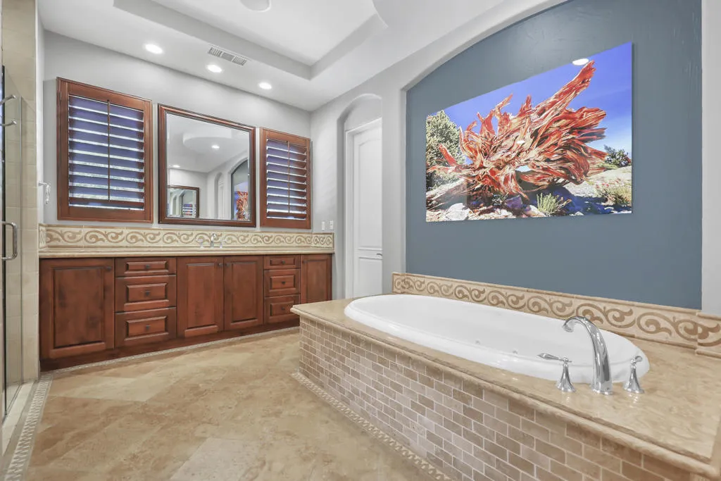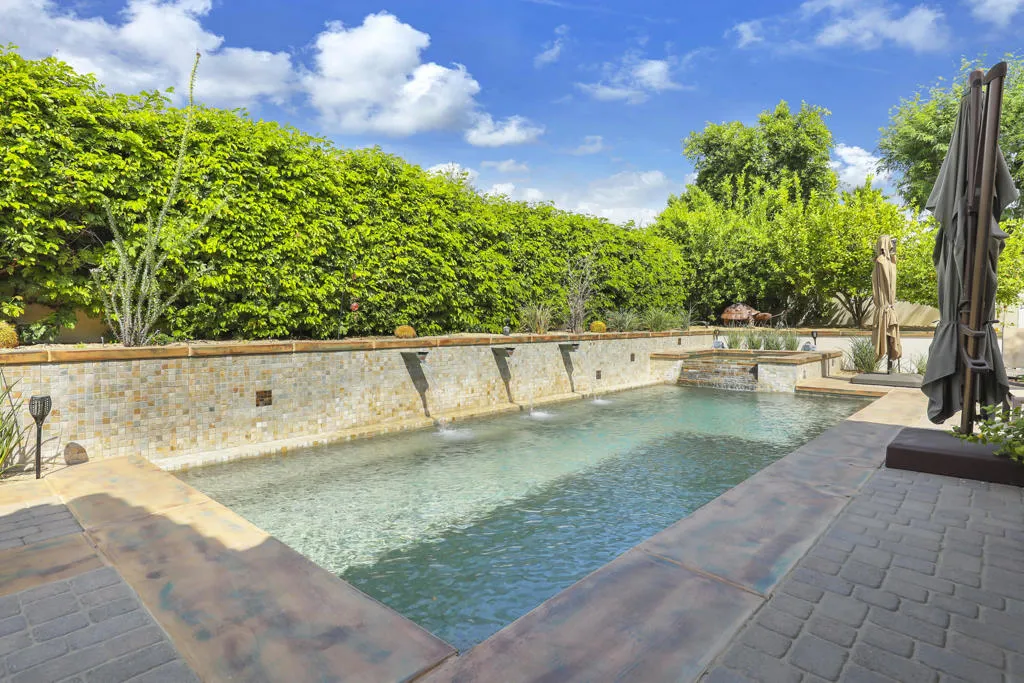 A rare opportunity to own a terrific refreshed former Model Home. This luxury 4 bedroom including Casita home, at Griffin Ranch, with a completely remodeled kitchen, with new quartz counters, backsplash, waterfall Kitchen Island and refreshed cabinets is one of the most popular floor plans. The upgrades start at the very private gated entrance and covered front courtyard with all new misting system & fireplace. This outdoor space sets the tone for how all the living spaces have been redesigned. Twin office /den spaces allow couples each private space for work, or play. Once inside you'll be impressed with how current this former model lives with the open great room, large cooks' kitchen & comfortable Morning room. If you are looking for privacy, this is it! The mature landscaping provides you with an amazing backyard, pool, spa, bocce ball court, room for your family & friends or head over to clubhouse and enjoy all the amenities that Griffin Ranch has to offer, including Pickleball, Tennis, Jr Olympic pool & spa. The parties at the clubhouse are second to none, the pickleball group has grown to well over 100 players, this is simply a fun place to live & play.