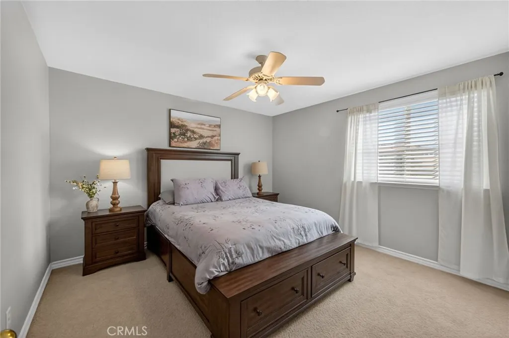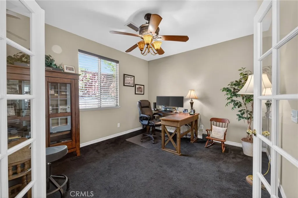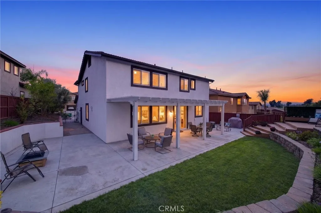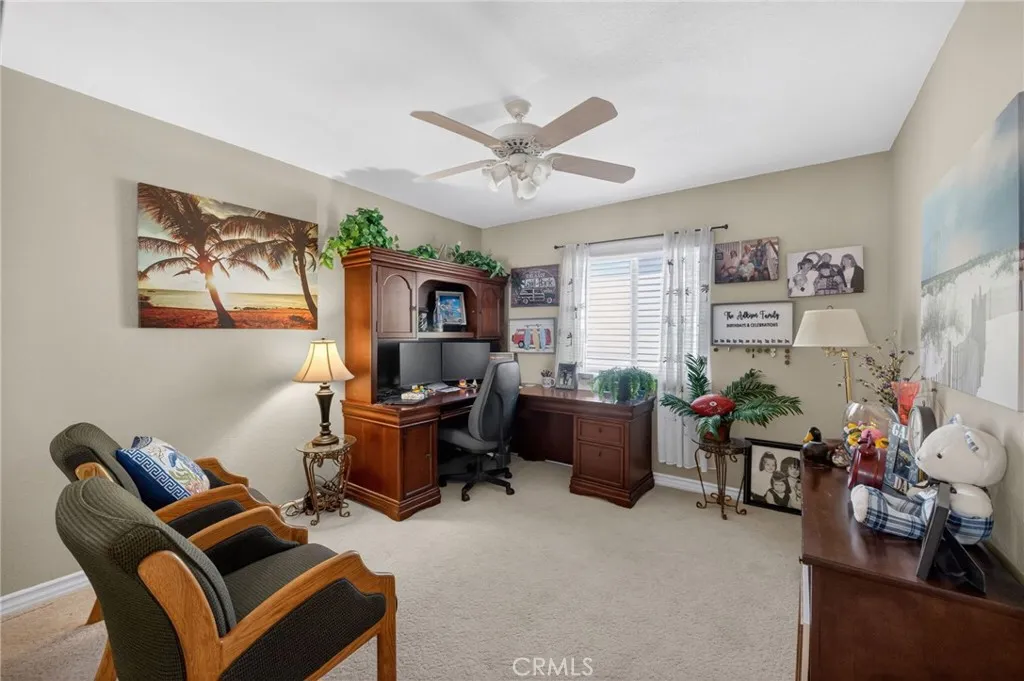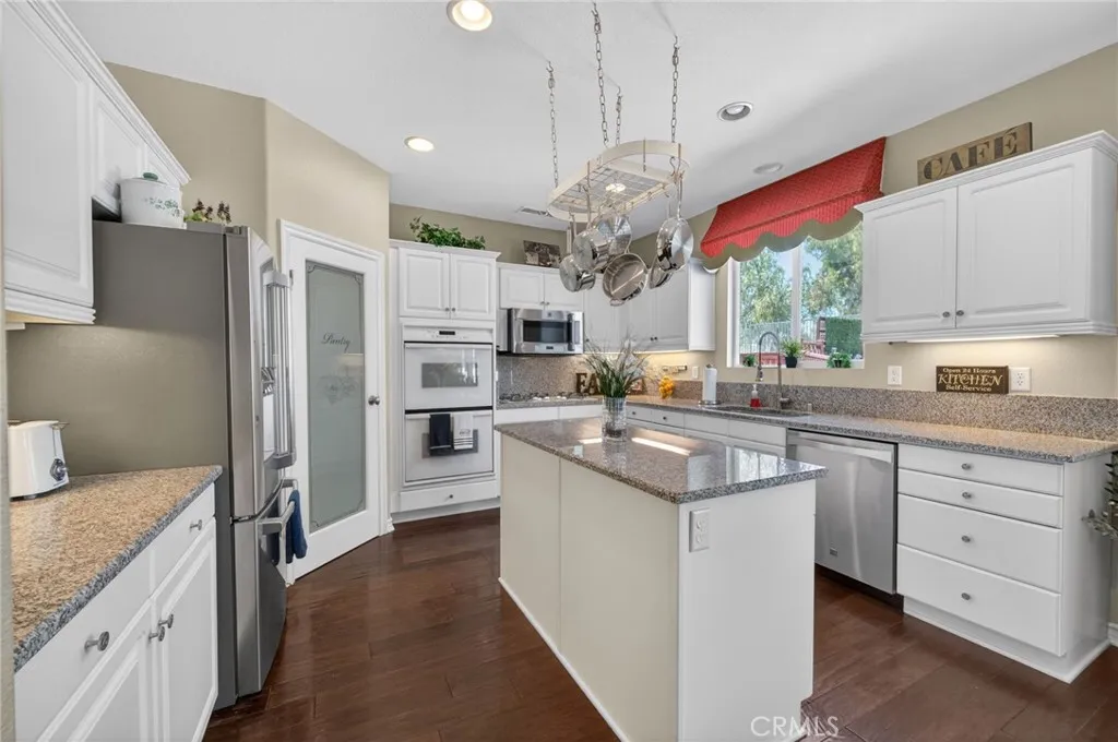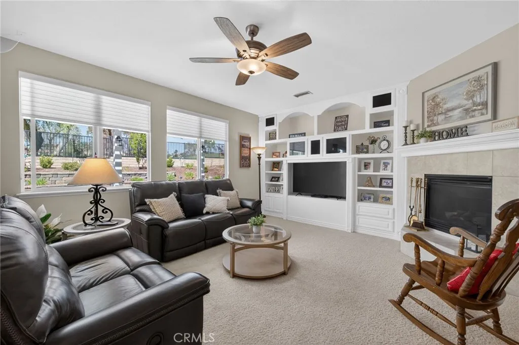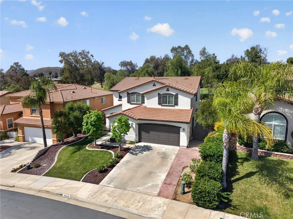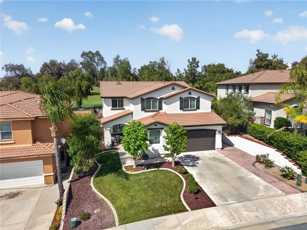 Discover this stunning Murrieta gem, perfectly situated in a highly sought-after golf club community with breathtaking views of the course and first hole. This beautifully maintained home shows like a model, beginning with a custom entry door that welcomes you into elegant formal living and dining spaces. The gourmet island kitchen is a chef’s dream, featuring Shaker-style cabinetry, granite countertops, a spacious walk-in pantry, and upgraded appliances including a double oven and refrigerator. The open-concept design flows seamlessly into the inviting family room, complete with a cozy fireplace and custom built-in entertainment center. Downstairs offers a versatile den or office, easily converted into a guest bedroom, along with a convenient guest bathroom. An indoor laundry room with sink and cabinetry adds everyday functionality. Upstairs, enjoy a spacious loft perfect for entertaining or relaxing. The luxurious primary suite serves as a private retreat, complete with dual sinks, a soaking tub, separate shower, and a generous walk-in closet. Step outside to your beautifully landscaped backyard oasis, featuring a new covered patio, fresh sod, a sitting deck, and fruit trees—all perfectly positioned to take in the stunning golf course views. It’s an ideal setting for peaceful mornings, relaxing evenings, or year-round gatherings. Additional highlights include new exterior paint, hardwood flooring, plush carpet, upgraded lighting and blinds throughout, Two-car garage with overhead storage, and low-maintenance landscaping. Located on a quiet cul-de-sac with no HOA, and just minutes from shopping, dining, and more. This exceptional home truly has it all—ready and waiting for its new owners to call it home.